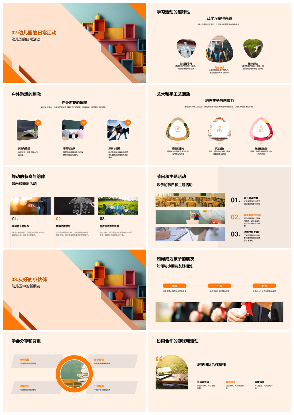 家园共育教育目标游戏学习户外活动幼儿园导览PPT模板