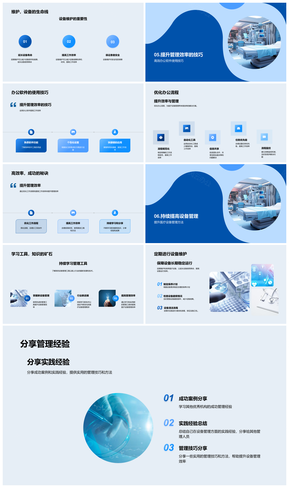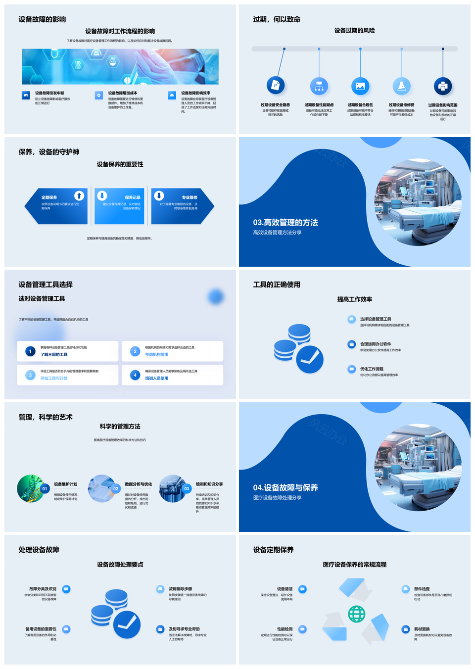 风云办公提供的医疗设备维护保养与智能流程优化PPT模板,下载格式为pptx,一共27页,作品中文字及图均可以修改和编辑,图片更改请在作品中右键图片并更换,文字修改请直接点击文字进行修改。