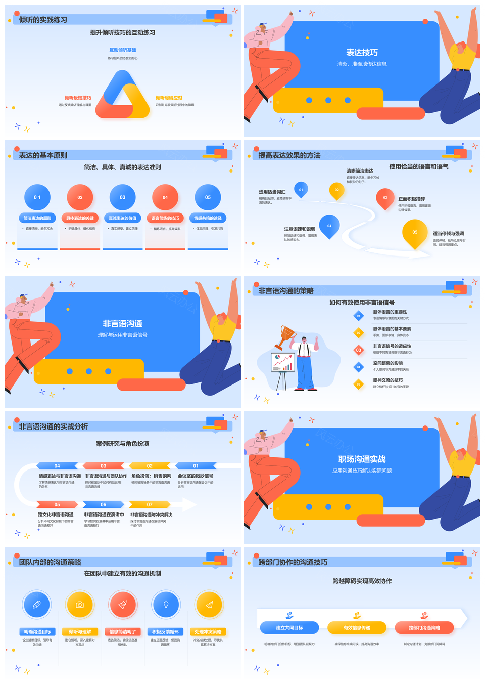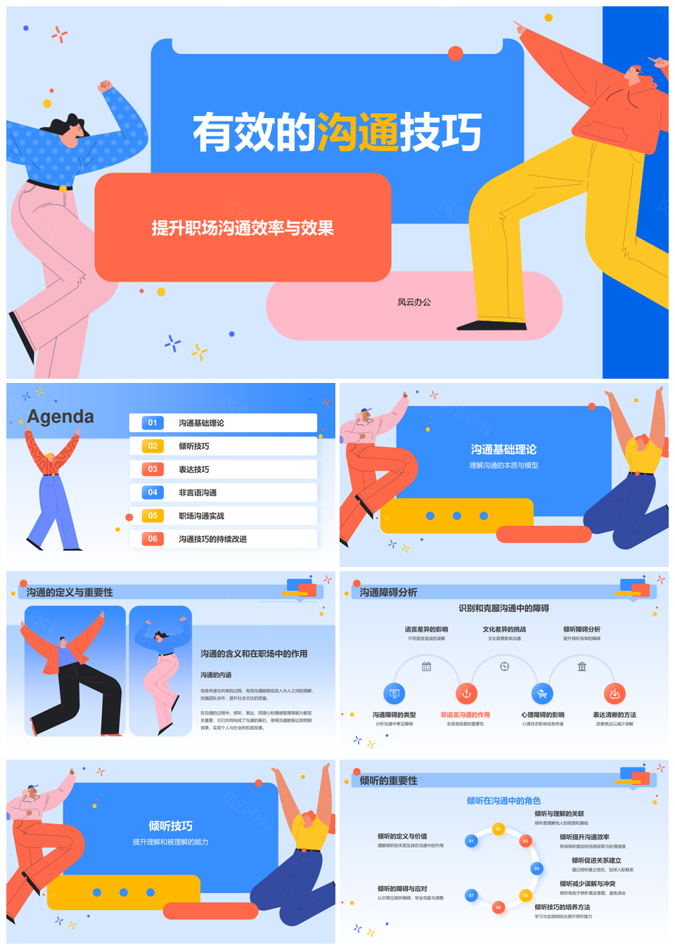 风云办公提供的职场有效沟通技巧倾听表达培训课件,下载格式为pptx,一共23页,作品中文字及图均可以修改和编辑,图片更改请在作品中右键图片并更换,文字修改请直接点击文字进行修改。