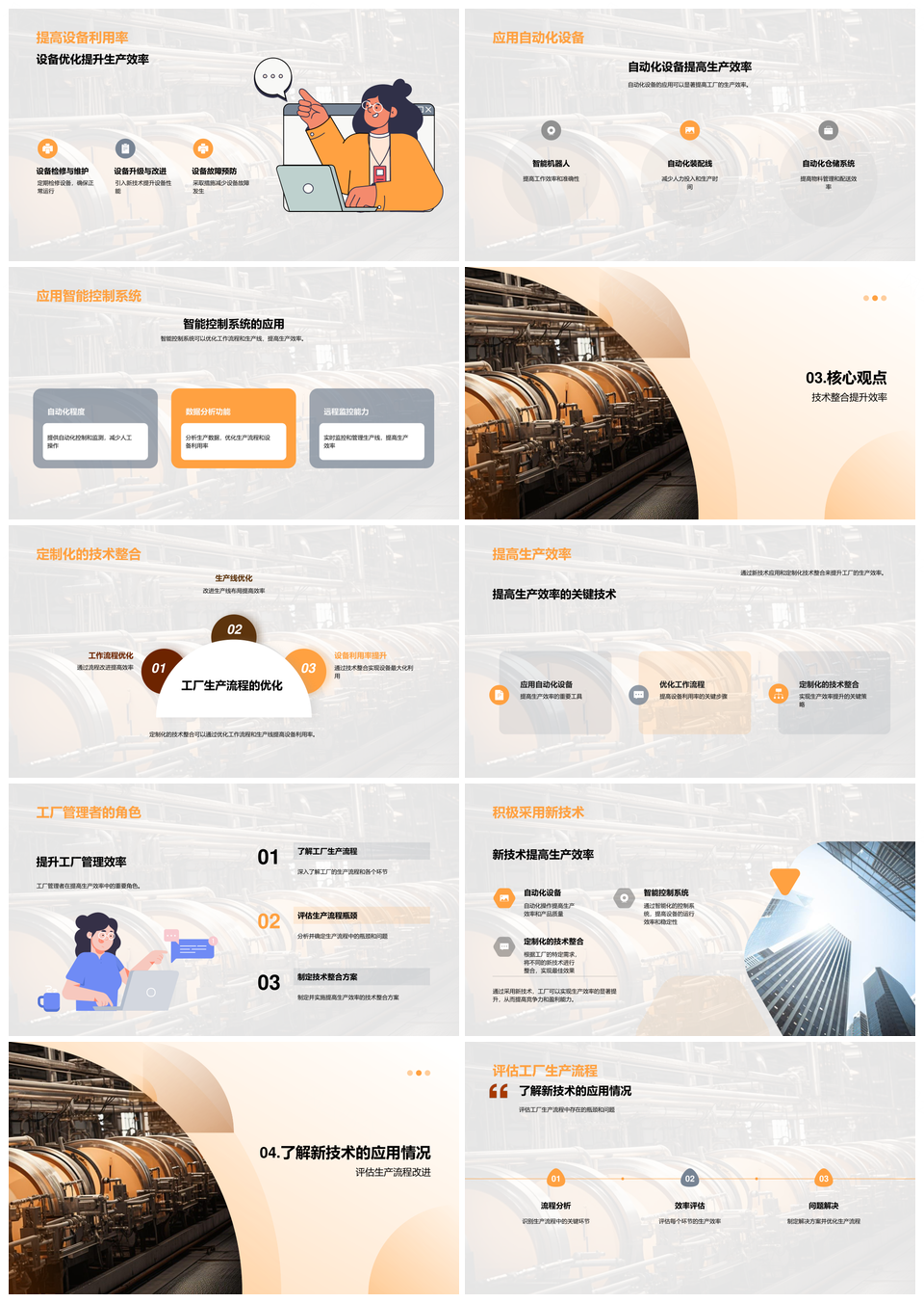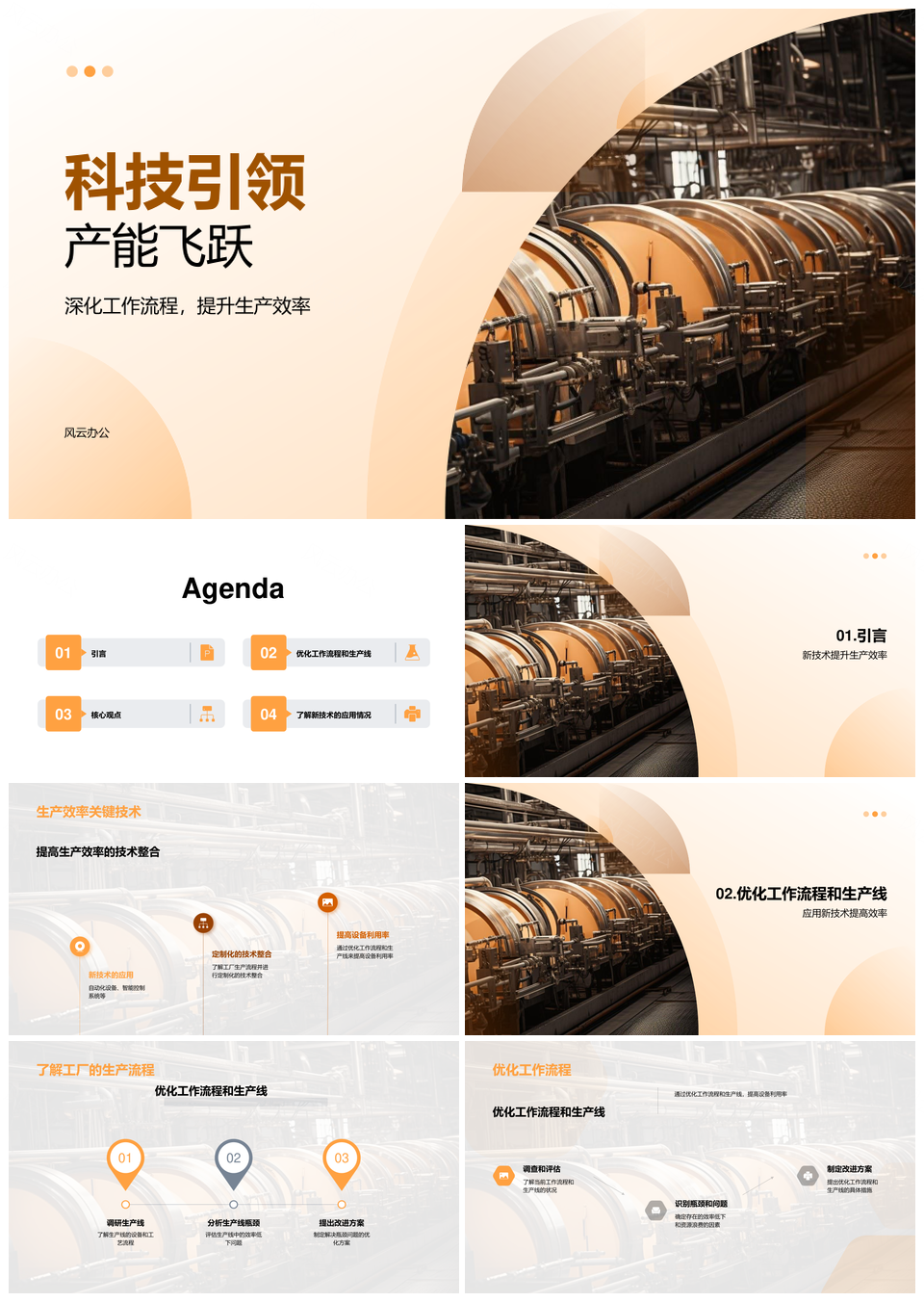 风云办公提供的创新科技优化产线提升工厂生产效率PPT模板,下载格式为pptx,一共21页,作品中文字及图均可以修改和编辑,图片更改请在作品中右键图片并更换,文字修改请直接点击文字进行修改。