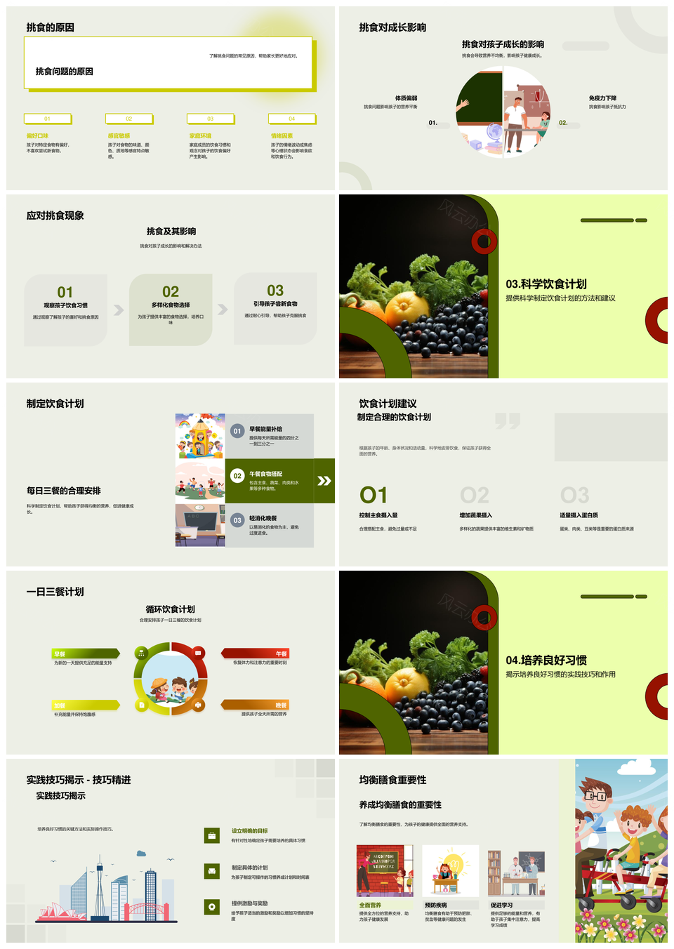 儿童科学膳食解决挑食营养均衡三餐计划PPT模板推荐