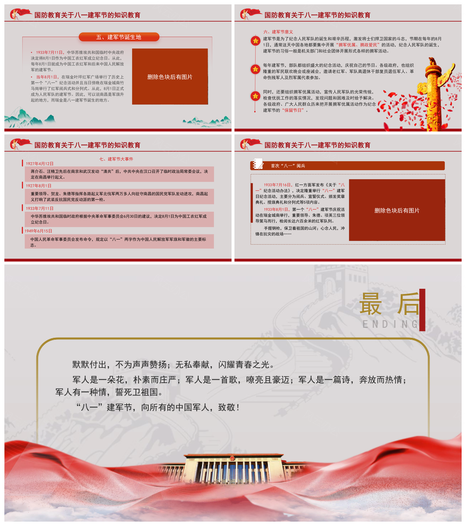 这是一张国防教育八一建军节知识教育学习专题PPT模板,包含国防教育、八一建军节、知识教育、学习专题等主题内容,也可用作国防教育八一建军节知识教育学习、国防教育八一建军节知识教育、国防教育八一建军节学习专题、八一建军节知识教育学习专题、国防教育知识教育学习专题、国防教育八一建军节知识、国防教育知识教育学习、八一建军节知识教育学习、知识教育学习专题、国防教育八一建军节、国防教育学习专题、八一建军节知识教育、知识教育学习专题、八一建军节学习专题、国防教育知识教育等PPT场景使用。