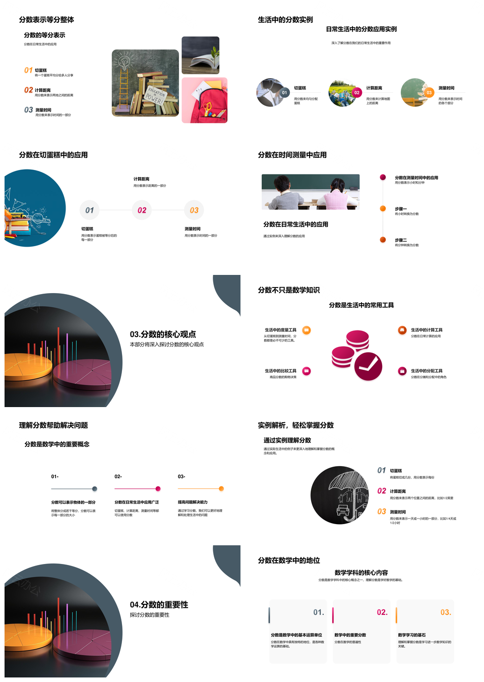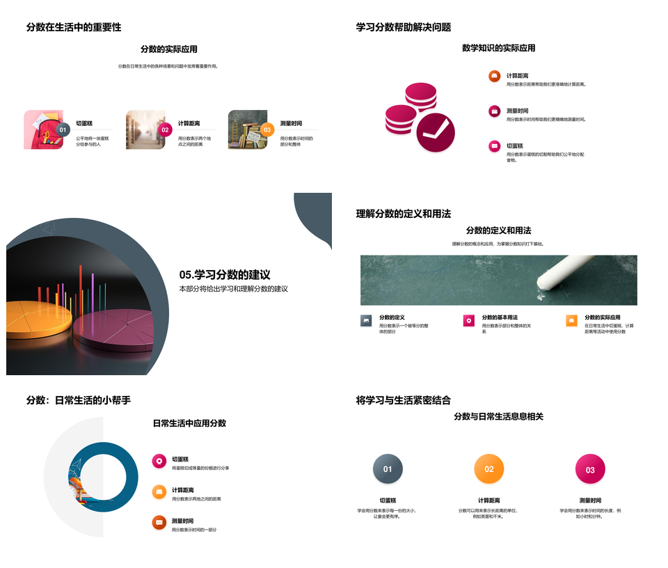分数数学知识生活应用整数等分教学饼图PPT模板推荐