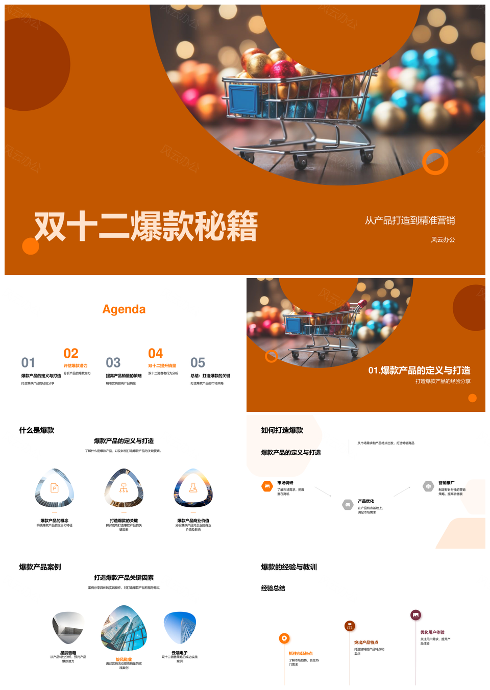 风云办公提供的双十二爆款产品精准营销秘籍PPT模板,下载格式为pptx,一共25页,作品中文字及图均可以修改和编辑,图片更改请在作品中右键图片并更换,文字修改请直接点击文字进行修改。