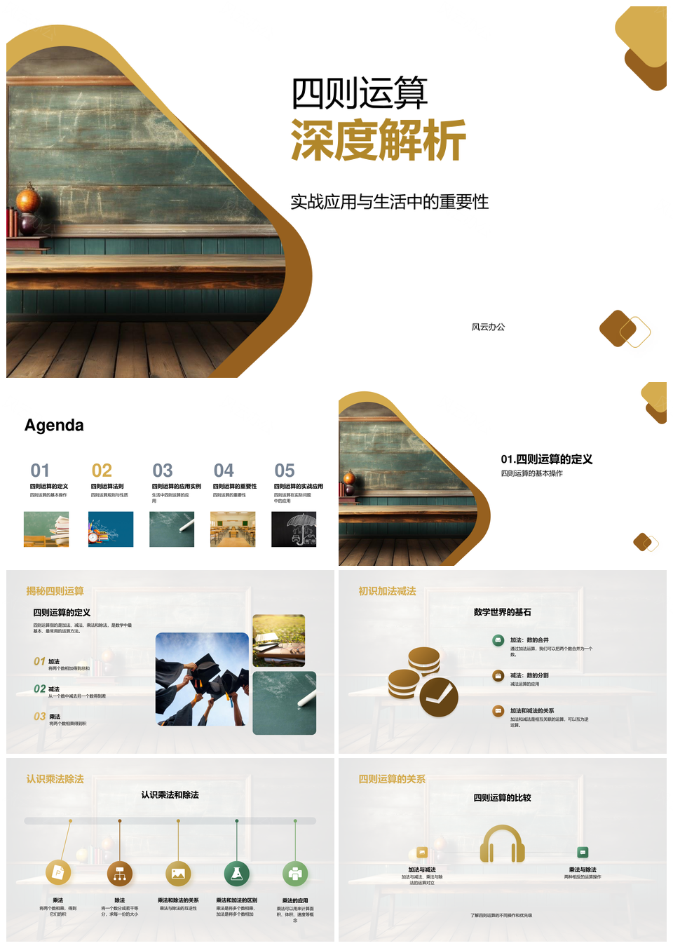 风云办公提供的四则运算加减乘除规则实际应用解析PPT模板,下载格式为pptx,一共28页,作品中文字及图均可以修改和编辑,图片更改请在作品中右键图片并更换,文字修改请直接点击文字进行修改。