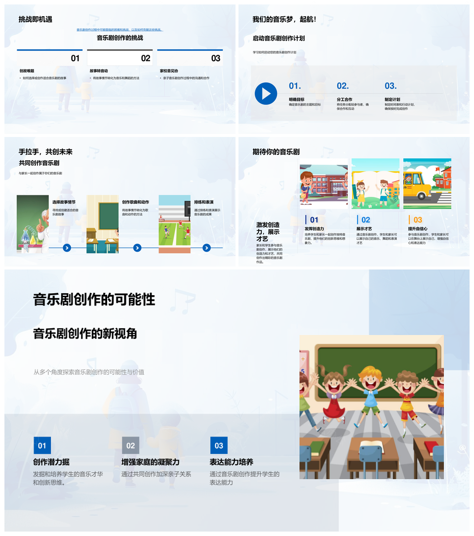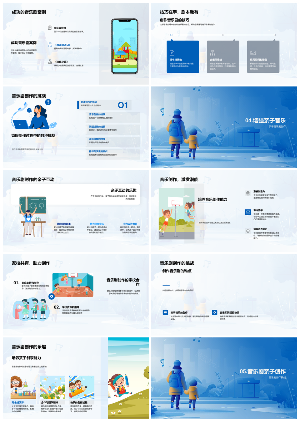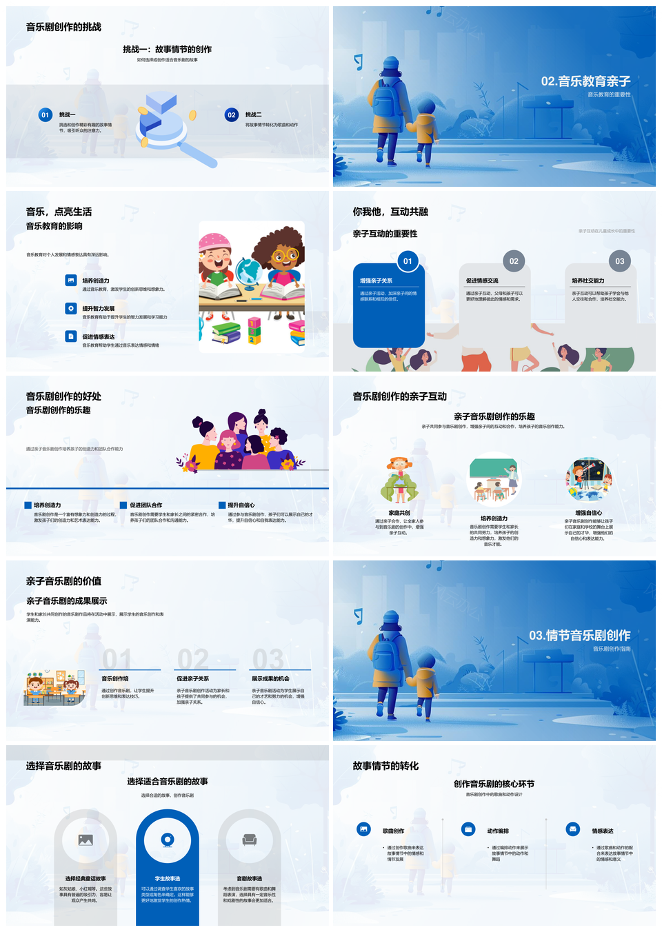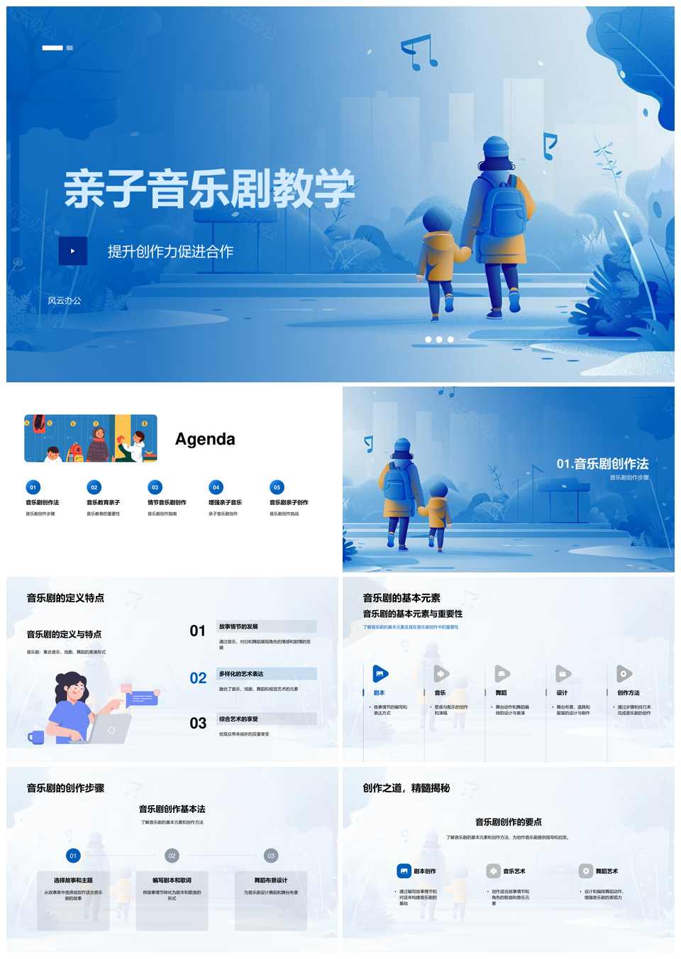 风云办公提供的亲子音乐剧教学提升创作力促进合作PPT模板,下载格式为pptx,一共33页,作品中文字及图均可以修改和编辑,图片更改请在作品中右键图片并更换,文字修改请直接点击文字进行修改。