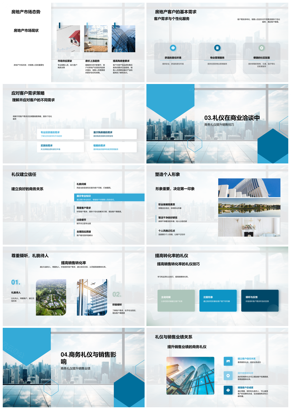 风云办公提供的房地产销售商务礼仪与洽谈之道PPT模板,下载格式为pptx,一共24页,作品中文字及图均可以修改和编辑,图片更改请在作品中右键图片并更换,文字修改请直接点击文字进行修改。