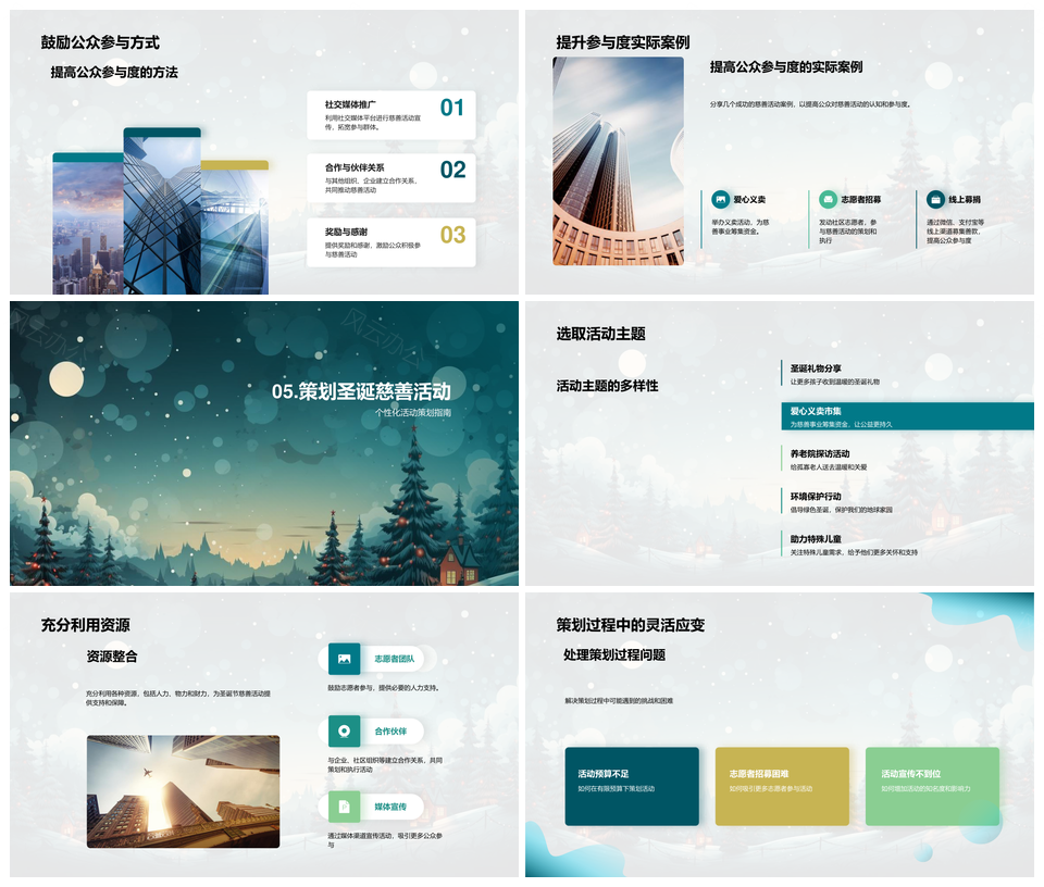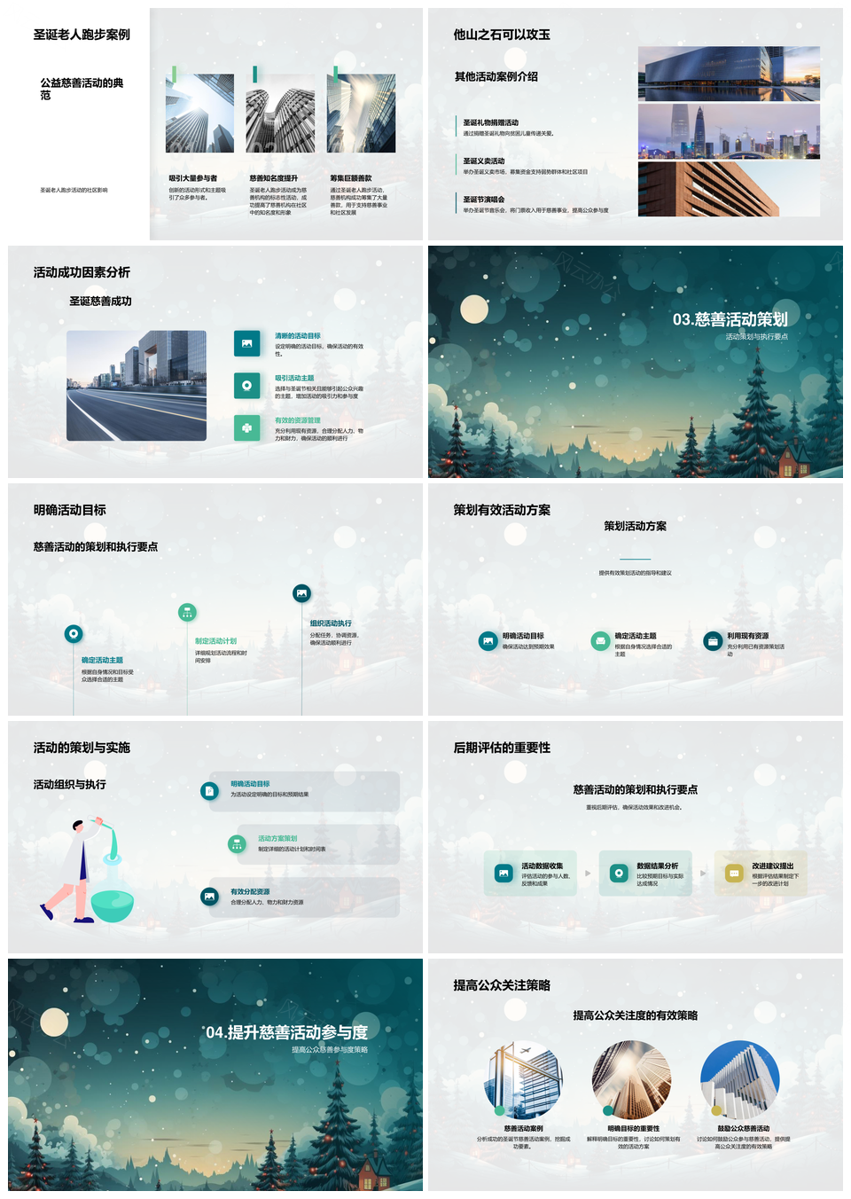 这是一张圣诞公益跑树活动策划提升社区慈善参与PPT模板,包含圣诞、公益跑、树活动、策划、提升、社区、慈善、参与等主题内容,也可用作圣诞公益活动策划、提升社区慈善参与、社区慈善公益活动、策划提升社区参与、社区慈善活动、公益活动策划、提升社区参与、公益慈善参与、策划提升公益、圣诞活动策划、社区慈善、慈善参与、圣诞公益、公益活动、策划提升等PPT场景使用。 风云办公提供的圣诞公益跑树活动策划提升社区慈善参与PPT模板,下载格式为pptx,一共24页,作品中文字及图均可以修改和编辑,图片更改请在作品中右键图片并更换,文字修改请直接点击文字进行修改。