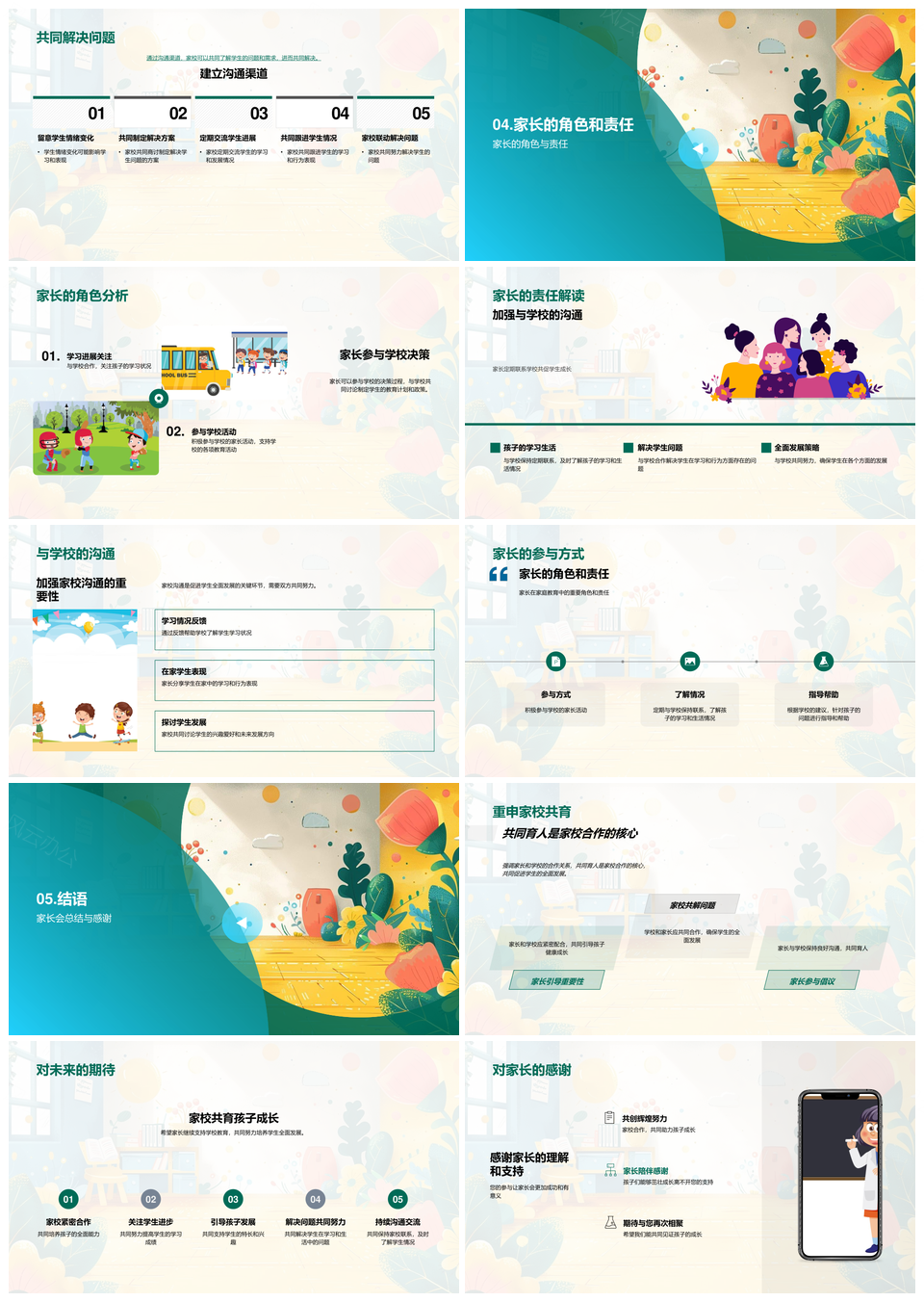 五年级家长会家校合作学业习惯特长发展PPT模板推荐