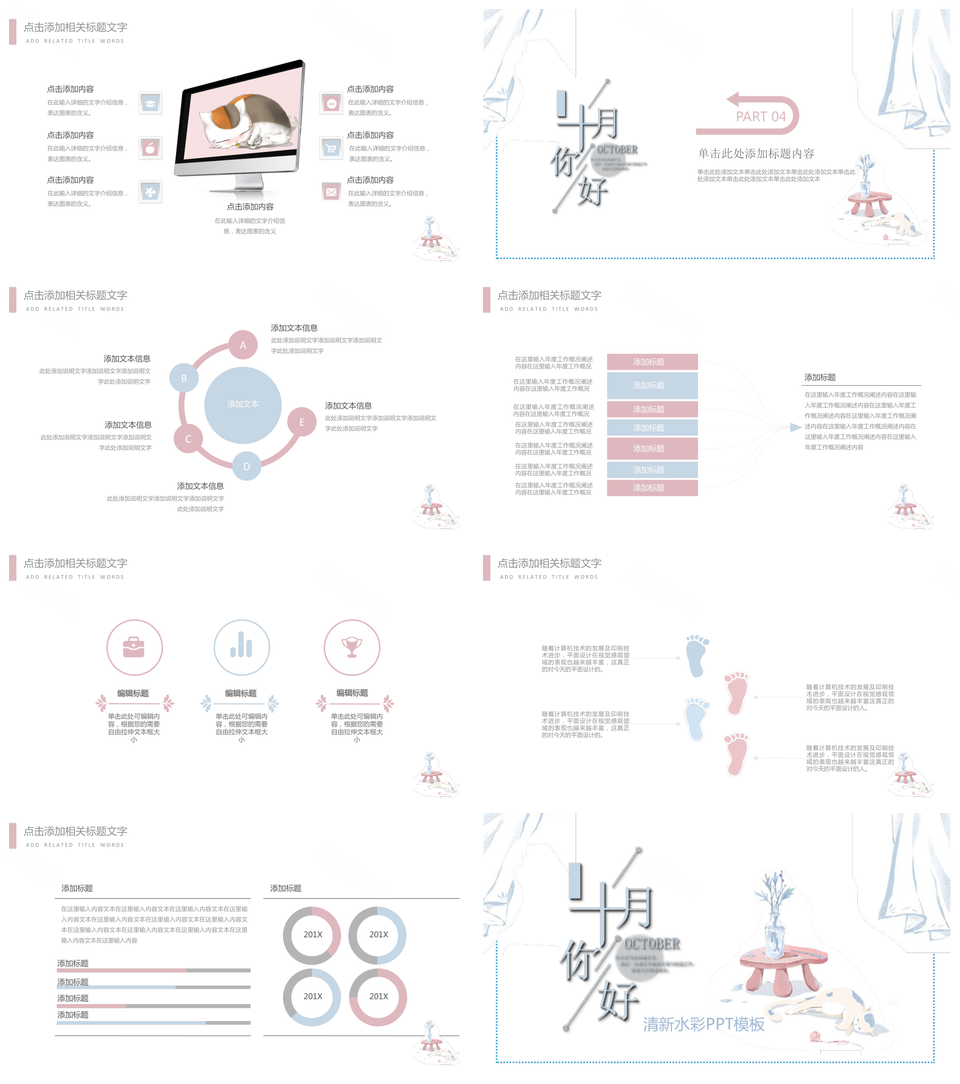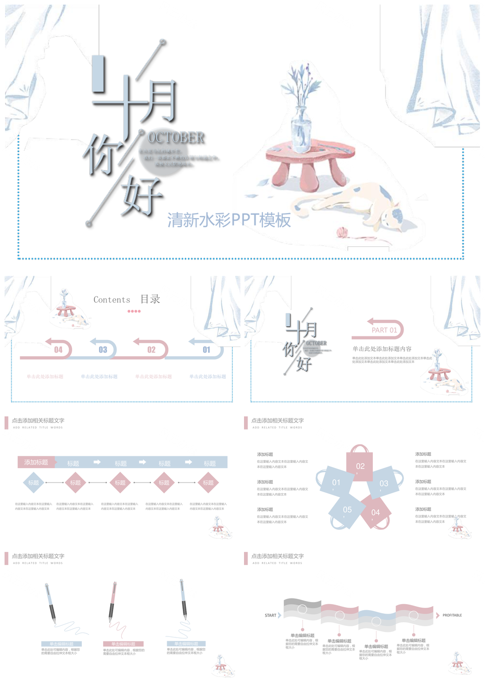 这是一张清新水彩PPT模板,包含清新、水彩等主题内容,也可用作清新、水彩 清新水彩、水彩清新、清新水彩、水彩清新等PPT场景使用。 风云办公提供的清新水彩PPT模板,下载格式为pptx,一共25页,作品中文字及图均可以修改和编辑,图片更改请在作品中右键图片并更换,文字修改请直接点击文字进行修改。