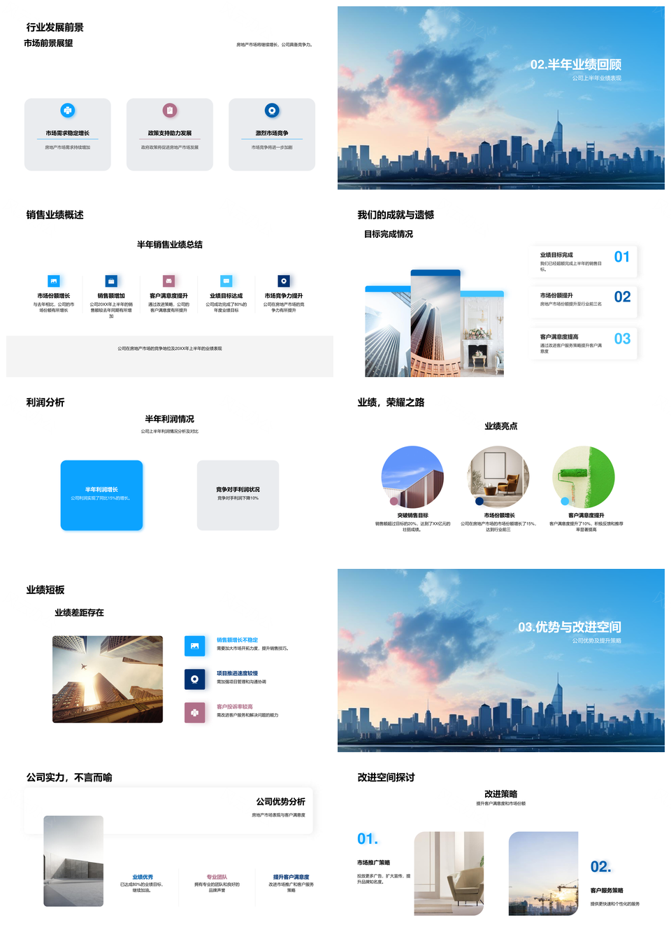这是一张房企半年业绩总结市场定位优势提升份额推广品牌摩天策略PPT模板,包含房企、半年业绩、总结、市场定位、优势、提升、份额、推广、品牌、摩天策略等主题内容,也可用作房企半年业绩总结市场定位、市场定位优势提升份额、优势提升份额推广品牌、推广品牌摩天策略、房企业绩总结市场定位、半年总结市场定位优势、业绩市场定位优势提升、市场优势提升份额推广、提升份额推广品牌、份额推广品牌摩天、品牌摩天策略总结、房企市场定位优势、摩天策略提升份额、优势推广品牌提升、份额市场定位策略等PPT场景使用。 风云办公提供的房企半年业绩总结市场定位优势提升份额推广品牌摩天策略PPT模板,下载格式为pptx,一共33页,作品中文字及图均可以修改和编辑,图片更改请在作品中右键图片并更换,文字修改请直接点击文字进行修改。