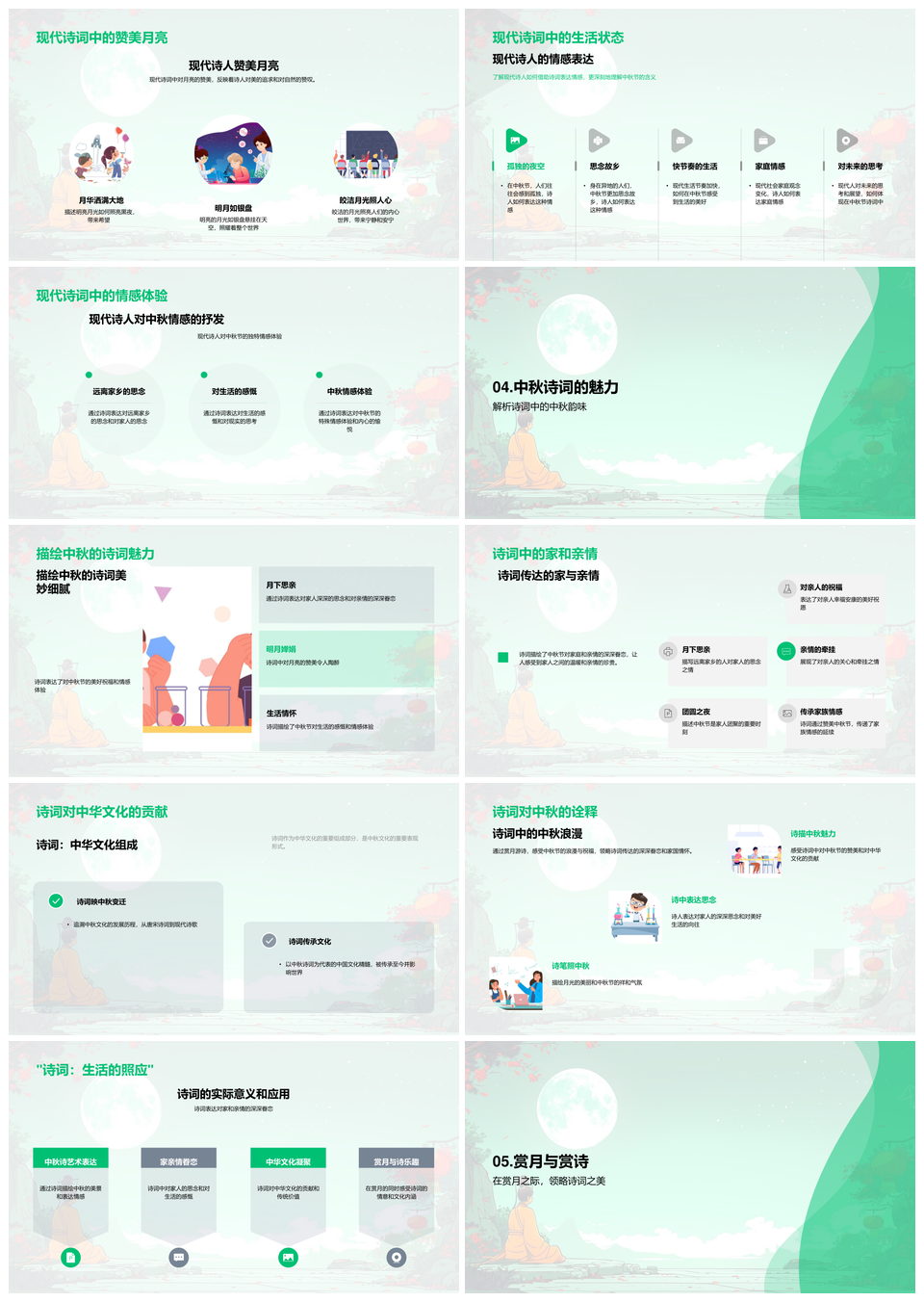 这是一张中秋唐宋现代诗词咏月思亲鉴赏PPT模板,包含中秋、唐宋、现代、诗词、咏月、思亲、鉴赏等主题内容,也可用作中秋唐宋诗词咏月、唐宋诗词咏月思亲、现代诗词咏月思亲、中秋咏月思亲鉴赏、唐宋咏月思亲鉴赏、现代咏月思亲鉴赏、中秋唐宋现代诗词、唐宋现代诗词鉴赏、中秋现代思亲鉴赏、唐宋诗词思亲鉴赏、中秋诗词咏月思亲、唐宋现代咏月思亲、中秋唐宋咏月思亲、现代诗词咏月鉴赏、中秋诗词思亲鉴赏等PPT场景使用。