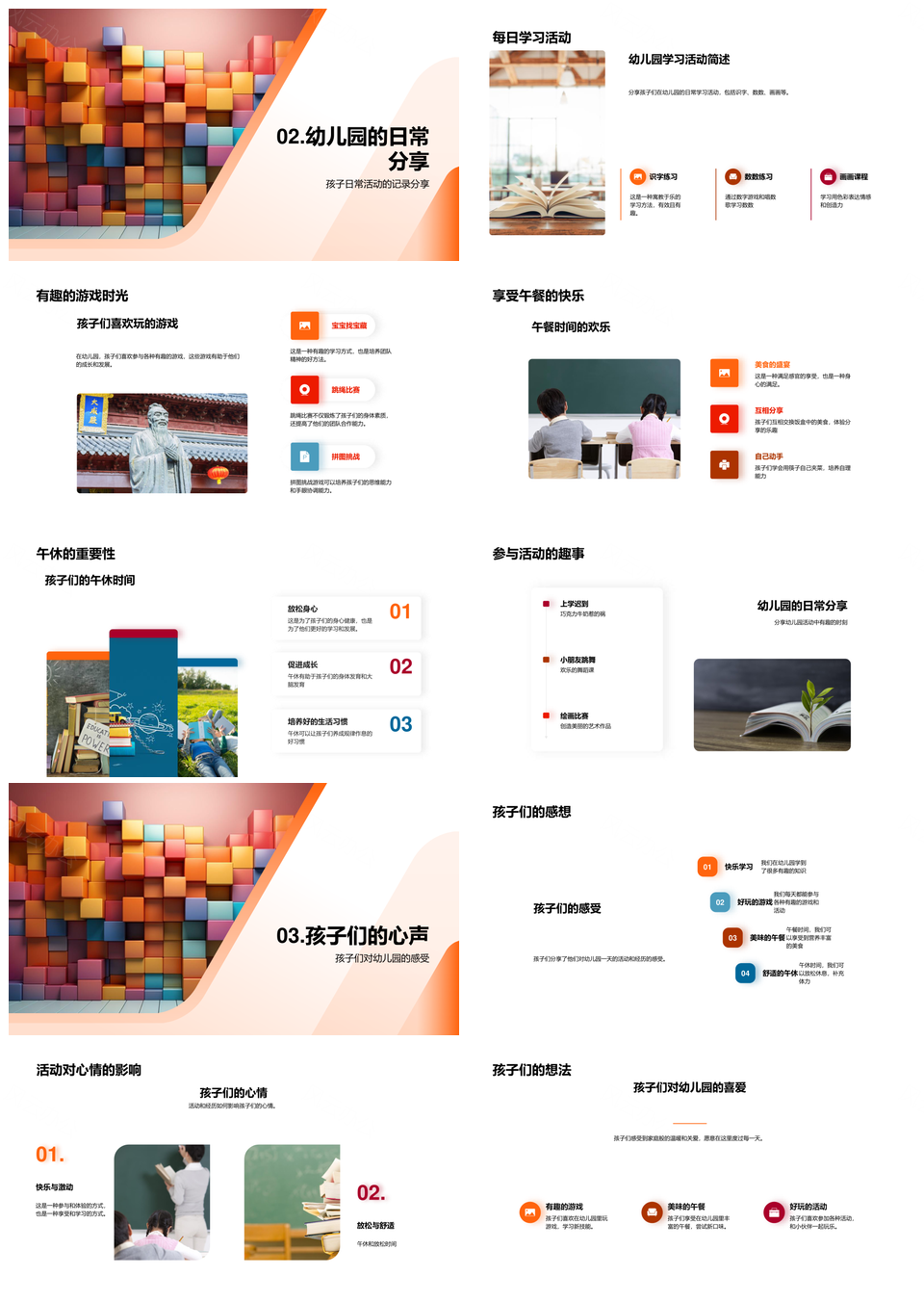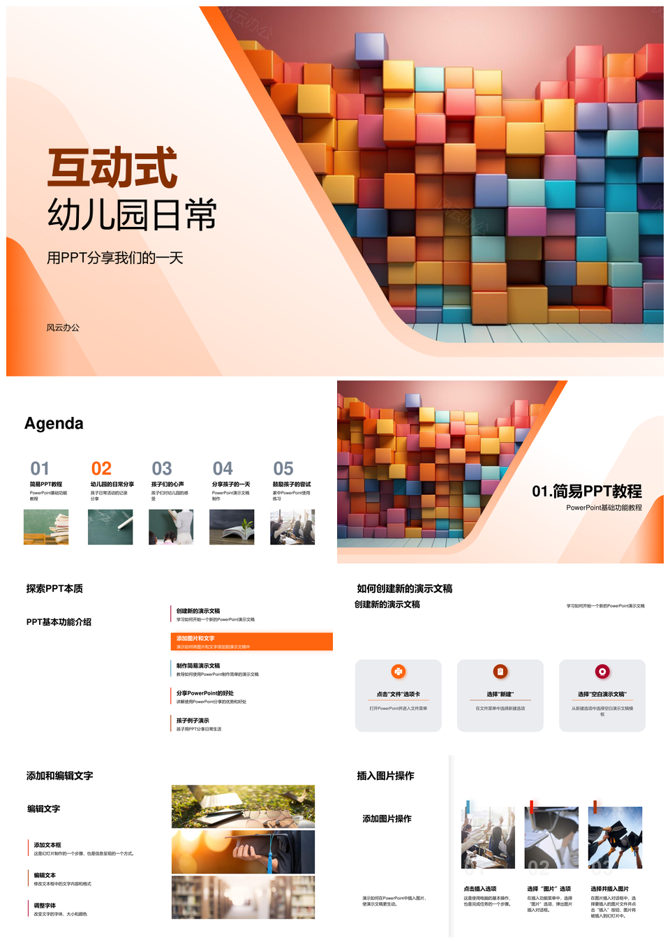 风云办公提供的互动式幼儿园日常PPT制作童趣积木学习活动,下载格式为pptx,一共30页,作品中文字及图均可以修改和编辑,图片更改请在作品中右键图片并更换,文字修改请直接点击文字进行修改。