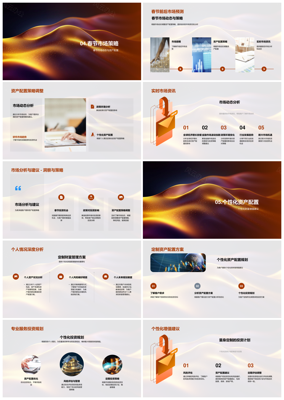 这是一张春节高净值资产配置趋势与财富增值策略PPT模板,包含春节、高净值资产、配置、趋势、财富、增值、策略等主题内容,也可用作春节高净值资产配置趋势、高净值资产配置趋势财富增值、资产配置趋势财富增值策略、高净值资产配置财富增值策略、春节资产配置财富增值策略、春节高净值财富增值策略、高净值资产配置趋势、资产配置趋势财富增值、高净值资产配置财富增值、趋势财富增值策略、春节高净值资产配置、资产配置财富增值策略、财富增值策略、春节高净值、资产配置趋势等PPT场景使用。 风云办公提供的春节高净值资产配置趋势与财富增值策略PPT模板,下载格式为pptx,一共28页,作品中文字及图均可以修改和编辑,图片更改请在作品中右键图片并更换,文字修改请直接点击文字进行修改。