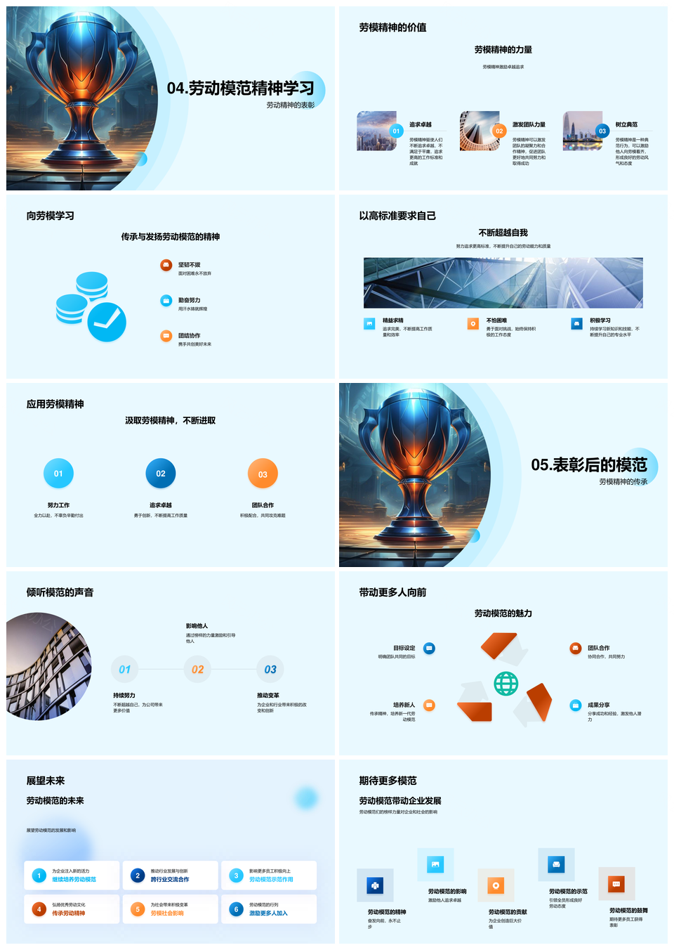 这是一张劳模精神引领企业文化评选表彰贡献PPT模板,包含劳模精神、引领、企业、文化、评选、表彰、贡献等主题内容,也可用作劳模精神引领企业、精神引领企业文化、引领企业文化评选、企业文化评选表彰、文化评选表彰贡献、劳模精神引领、精神引领企业、引领企业文化、企业文化评选、文化评选表彰、评选表彰贡献、企业评选表彰、劳模精神、精神引领、企业文化等PPT场景使用。