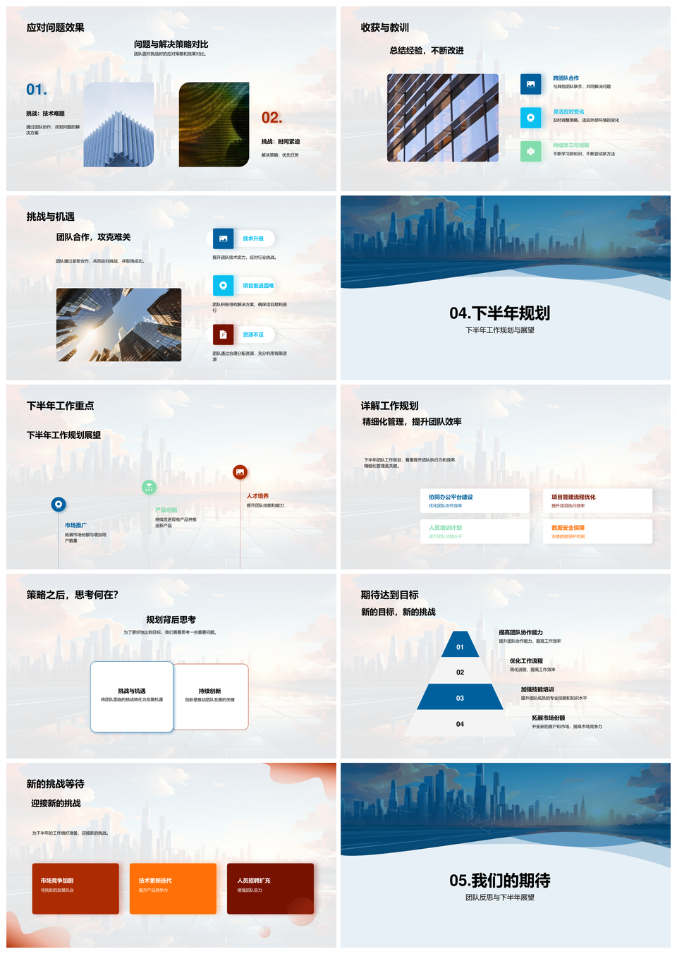 这是一张峥嵘岁月团队年中攻坚共筑辉煌摩天大楼PPT模板,包含峥嵘岁月、团队、年中、攻坚、共筑、辉煌、摩天大楼等主题内容,也可用作峥嵘岁月团队年中攻坚共筑辉煌、峥嵘岁月团队攻坚共筑辉煌、峥嵘岁月年中攻坚共筑辉煌、团队年中攻坚共筑辉煌、峥嵘岁月团队攻坚共筑、团队年中攻坚共筑、峥嵘岁月攻坚共筑辉煌、年中攻坚共筑辉煌、团队攻坚共筑辉煌、共筑辉煌摩天大楼、峥嵘岁月团队攻坚、团队年中攻坚、攻坚共筑辉煌、共筑辉煌摩天、辉煌摩天大楼等PPT场景使用。 风云办公提供的峥嵘岁月团队年中攻坚共筑辉煌摩天大楼PPT模板,下载格式为pptx,一共33页,作品中文字及图均可以修改和编辑,图片更改请在作品中右键图片并更换,文字修改请直接点击文字进行修改。