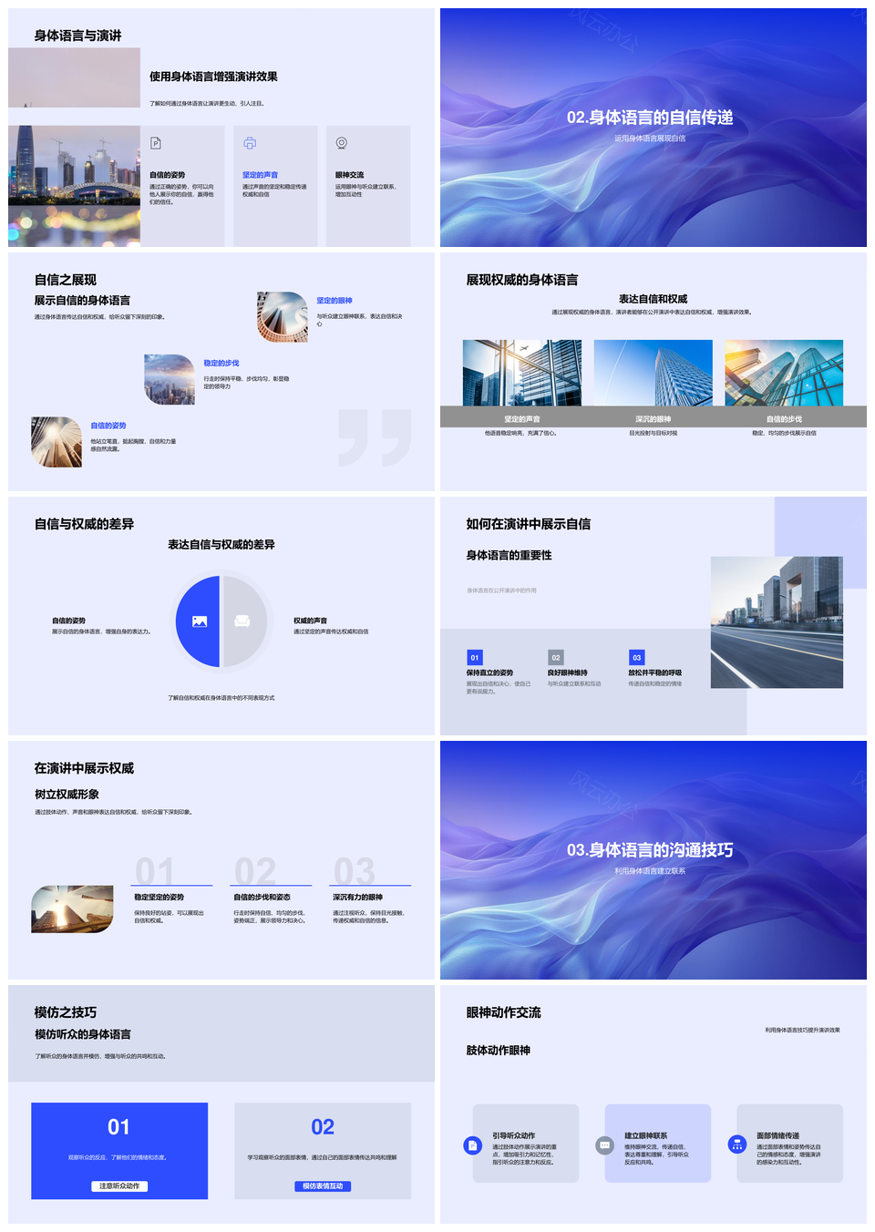 这是一张商务演讲身体语言自信权威运用技巧PPT模板,包含商务演讲、身体语言、自信、权威、运用技巧等主题内容,也可用作商务演讲身体语言自信权威、身体语言自信权威运用技巧、商务演讲身体语言自信、商务演讲身体语言权威、商务演讲身体语言运用技巧、商务演讲自信权威、身体语言自信权威、自信权威运用技巧、商务演讲身体语言、商务演讲运用技巧、身体语言自信、身体语言权威、身体语言运用技巧、自信权威、权威运用技巧等PPT场景使用。