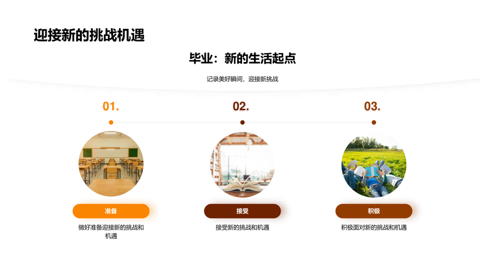 这是一张毕业生班级成长校园学术荣誉新起点PPT模板,包含毕业生、班级、成长、校园、学术、荣誉、新起点等主题内容,也可用作校园学术荣誉新起点、毕业生班级成长校园、班级成长校园学术、成长校园学术荣誉、毕业生成长学术荣誉、学术荣誉新起点、班级成长校园、成长校园学术、校园学术荣誉、毕业生班级成长、校园学术新起点、荣誉新起点、学术新起点、毕业生班级、校园学术等PPT场景使用。