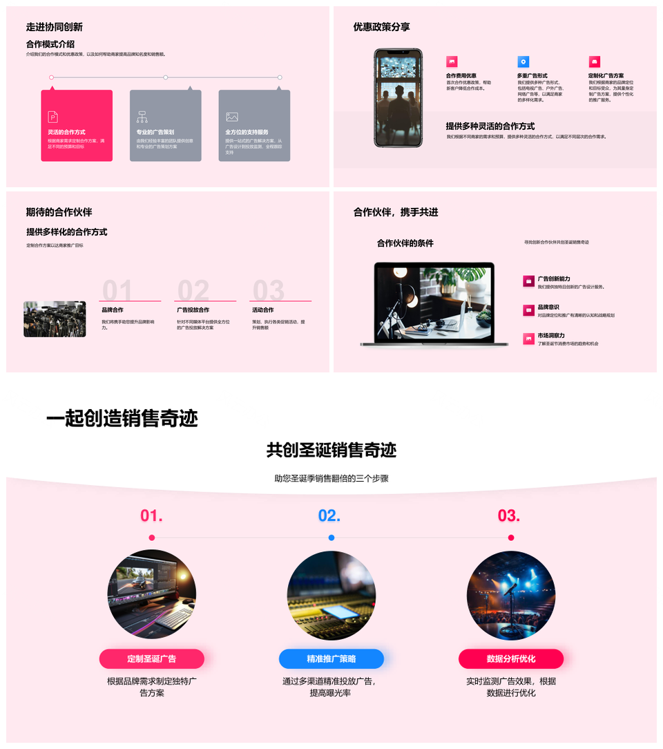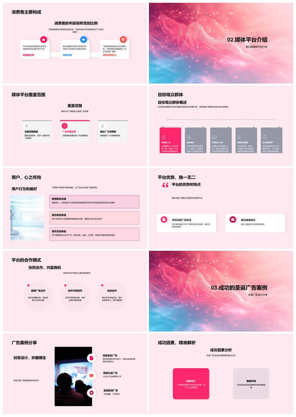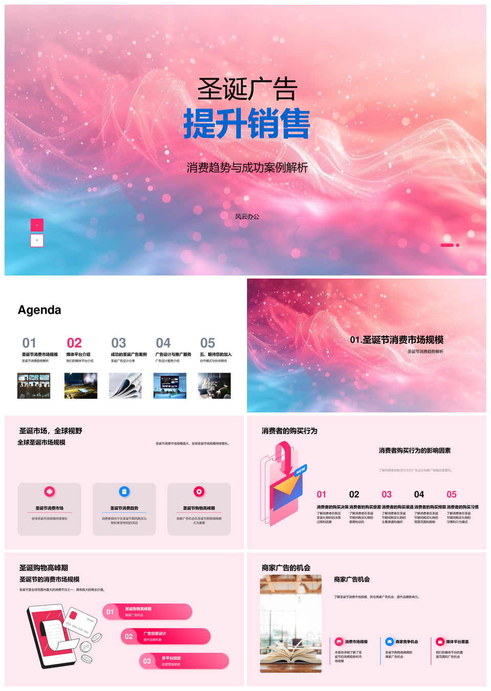 这是一张圣诞广告成功案例驱动消费趋势提升销售规模PPT模板,包含圣诞广告、成功案例、驱动、消费趋势、提升、销售规模等主题内容,也可用作圣诞广告成功案例驱动消费趋势、成功案例驱动消费趋势提升、驱动消费趋势提升销售规模、圣诞广告成功案例驱动、成功案例驱动消费趋势、驱动消费趋势提升、消费趋势提升销售规模、圣诞广告成功案例、成功案例驱动、驱动消费趋势、消费趋势提升、提升销售规模等PPT场景使用。 风云办公提供的圣诞广告成功案例驱动消费趋势提升销售规模PPT模板,下载格式为pptx,一共33页,作品中文字及图均可以修改和编辑,图片更改请在作品中右键图片并更换,文字修改请直接点击文字进行修改。