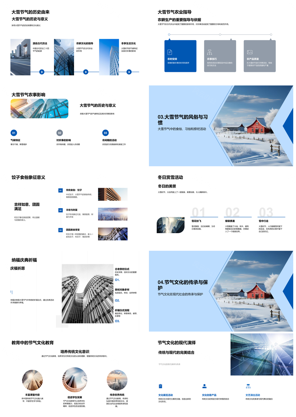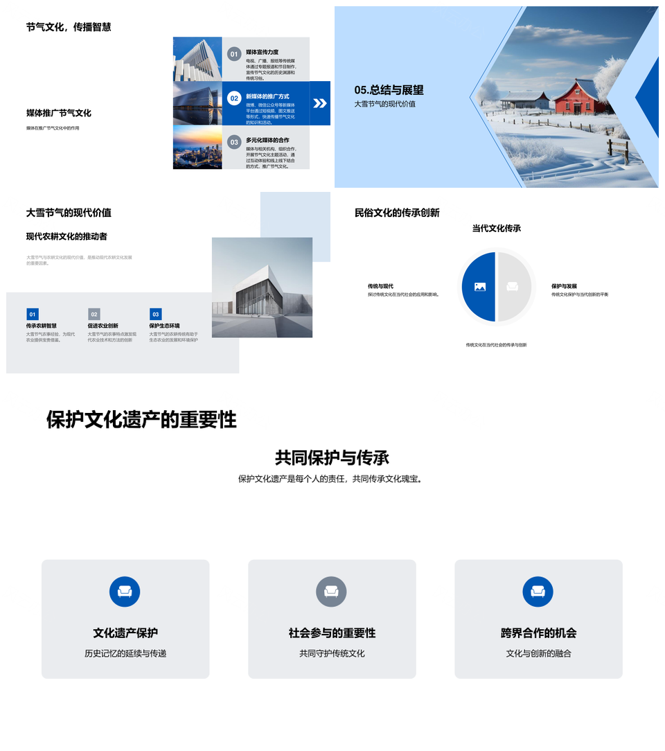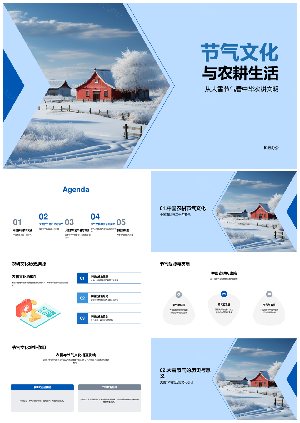 风云办公提供的中华农耕文明大雪节气雪覆农田PPT模板,下载格式为pptx,一共23页,作品中文字及图均可以修改和编辑,图片更改请在作品中右键图片并更换,文字修改请直接点击文字进行修改。