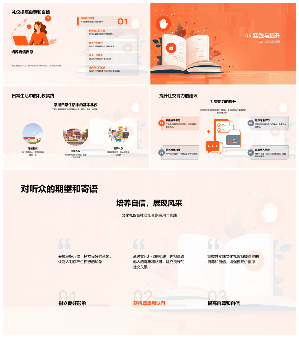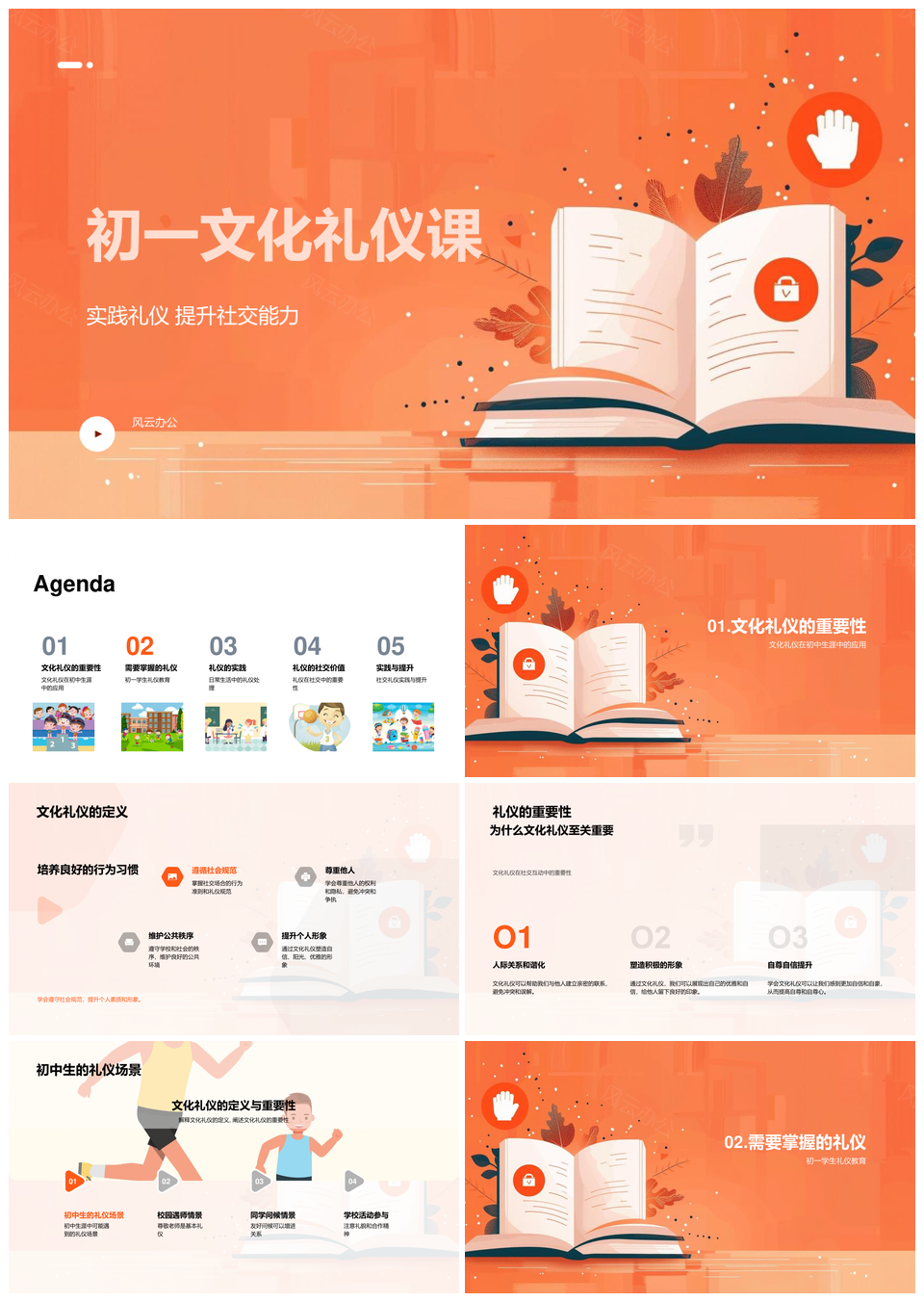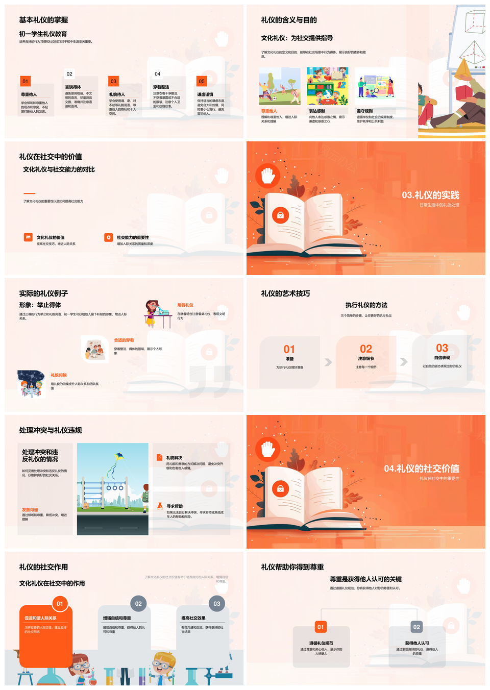 2025初中生文化礼仪实践提升社交能力PPT模板推荐