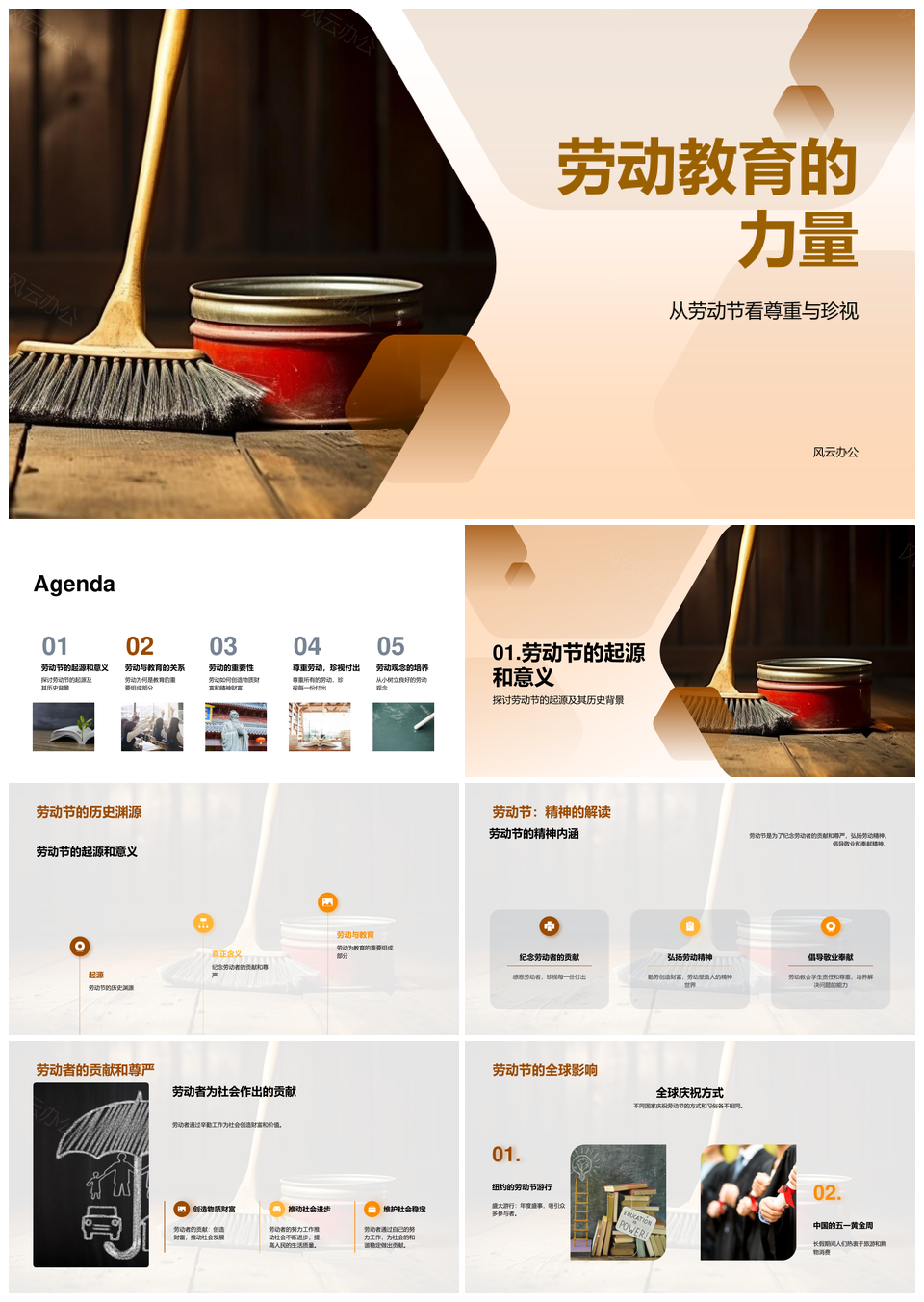 风云办公提供的劳动教育尊师重教珍视劳动者尊严PPT模板,下载格式为pptx,一共33页,作品中文字及图均可以修改和编辑,图片更改请在作品中右键图片并更换,文字修改请直接点击文字进行修改。