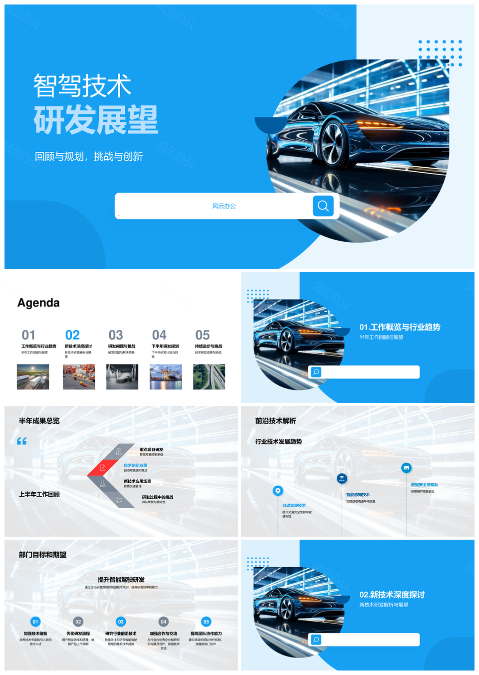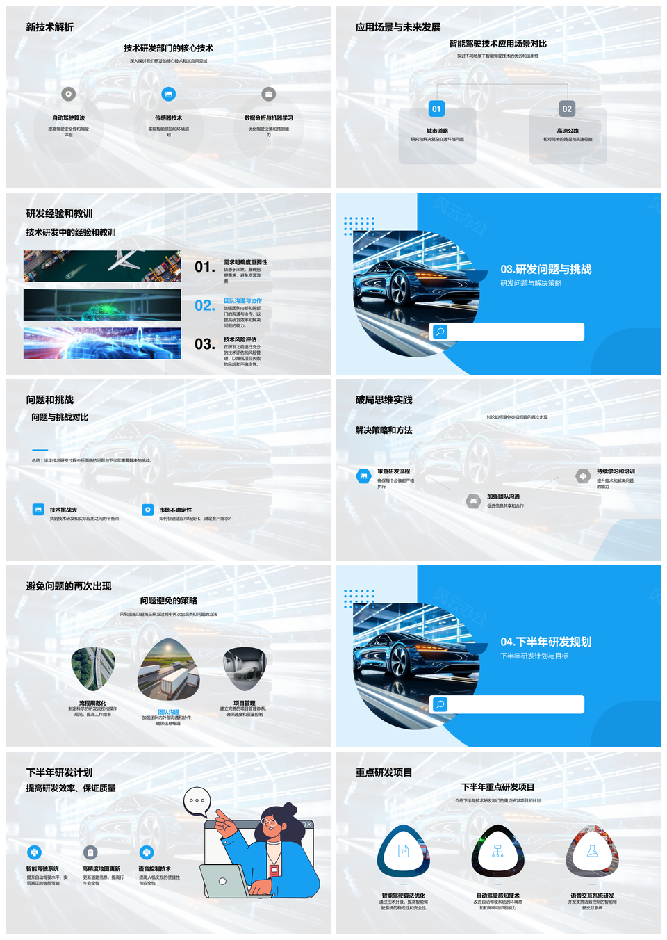 风云办公提供的自动驾驶研发挑战与创新展望PPT模板,下载格式为pptx,一共23页,作品中文字及图均可以修改和编辑,图片更改请在作品中右键图片并更换,文字修改请直接点击文字进行修改。