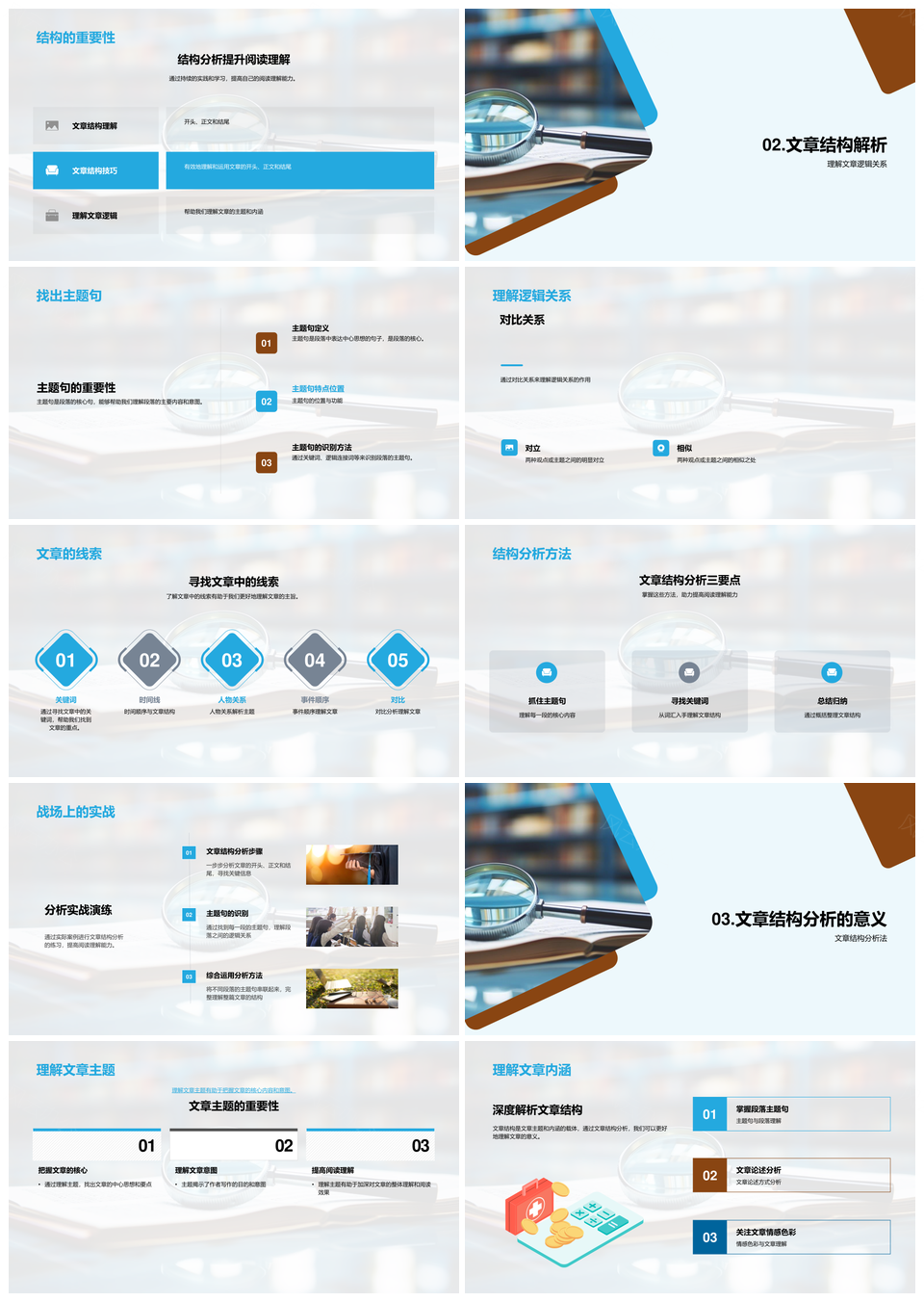 这是一张文章结构解析与阅读理解能力提升PPT模板,包含文章结构、解析、阅读理解能力、提升等主题内容,也可用作文章结构解析阅读理解能力提升、文章结构解析能力提升、文章结构阅读理解能力、结构解析阅读理解能力、解析阅读理解能力提升、文章结构解析阅读、文章阅读理解能力提升、结构解析能力提升、阅读理解能力提升、文章结构能力提升、文章结构解析、结构解析阅读、解析能力提升、文章能力提升、能力提升等PPT场景使用。