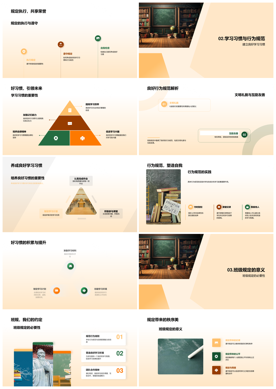风云办公提供的班级规定执行育良习学行规范PPT模板,下载格式为pptx,一共33页,作品中文字及图均可以修改和编辑,图片更改请在作品中右键图片并更换,文字修改请直接点击文字进行修改。