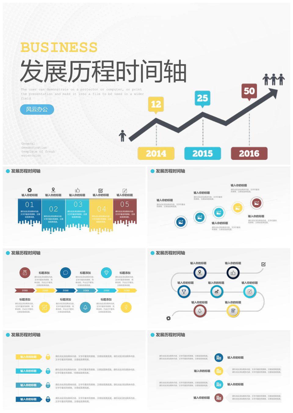 风云办公提供的企业发展大事记商务简约可视化时间轴PPT模板,下载格式为pptx,一共24页,作品中文字及图均可以修改和编辑,图片更改请在作品中右键图片并更换,文字修改请直接点击文字进行修改。