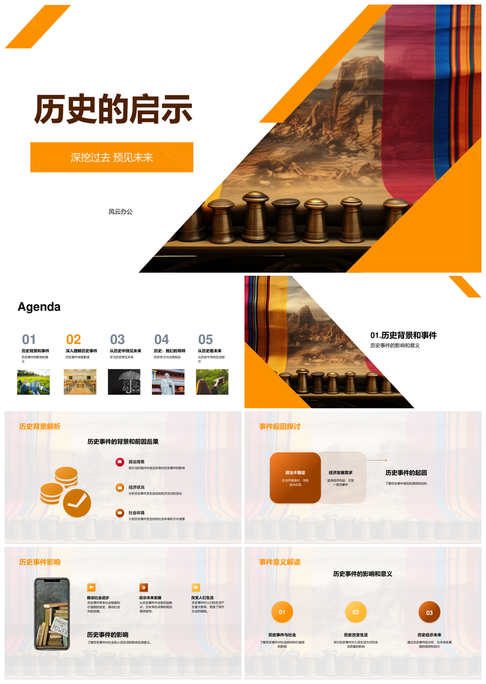 风云办公提供的历史启示古卷映鉴社会未来PPT模板,下载格式为pptx,一共28页,作品中文字及图均可以修改和编辑,图片更改请在作品中右键图片并更换,文字修改请直接点击文字进行修改。
