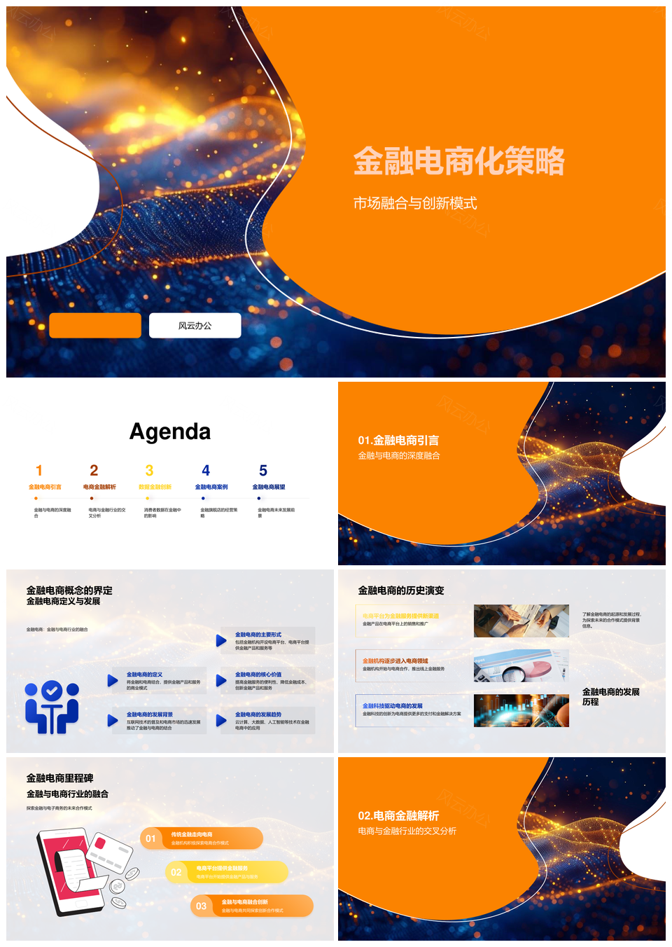 风云办公提供的金融电商化策略市场融合创新渠道PPT模板,下载格式为pptx,一共23页,作品中文字及图均可以修改和编辑,图片更改请在作品中右键图片并更换,文字修改请直接点击文字进行修改。