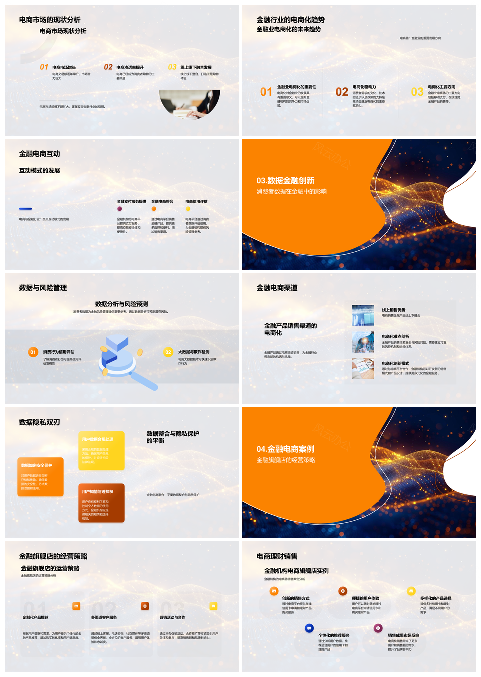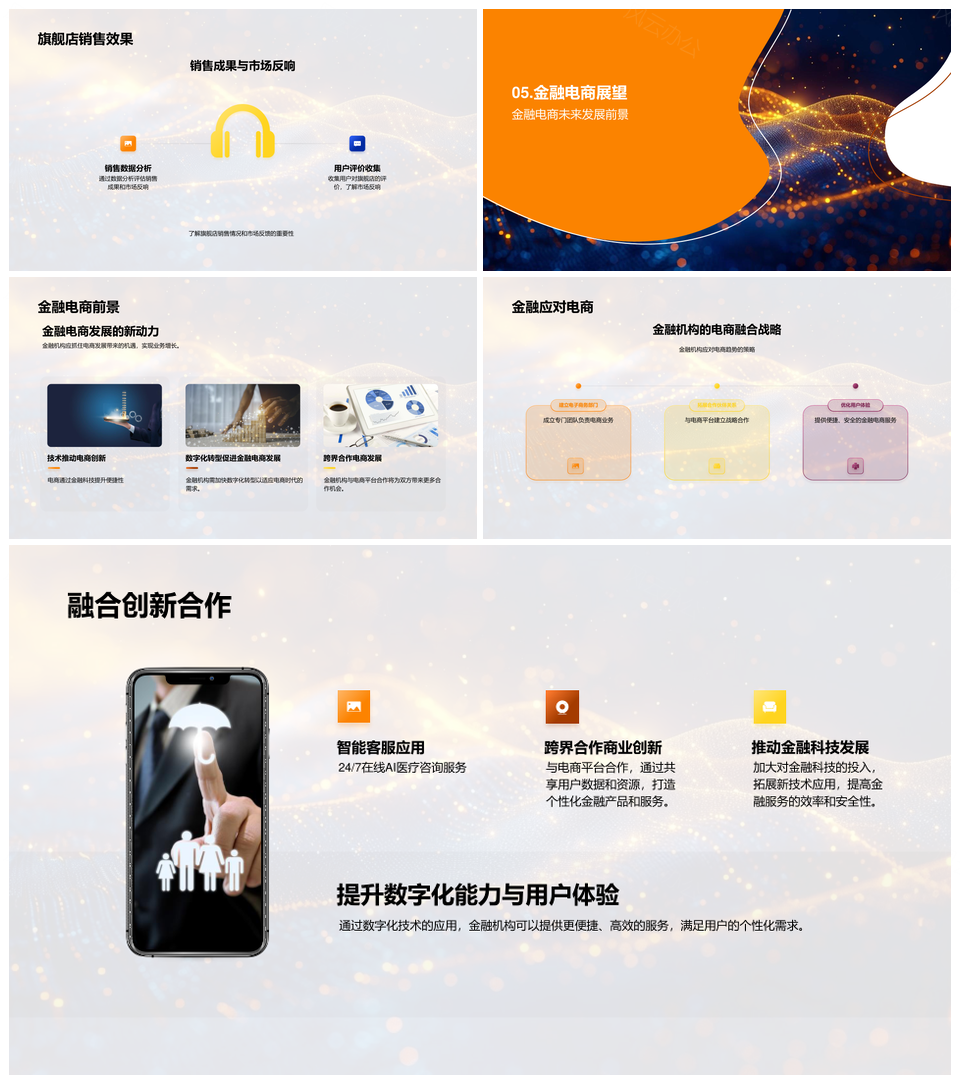 这是一张金融电商化策略市场融合创新渠道PPT模板,包含金融、电商化、策略、市场、融合、创新、渠道等主题内容,也可用作金融电商化策略市场、电商化策略市场融合、策略市场融合创新、市场融合创新渠道、金融电商化策略、电商化策略市场、策略市场融合、市场融合创新、融合创新渠道、金融电商化、电商化策略、策略市场、市场融合、融合创新、创新渠道等PPT场景使用。