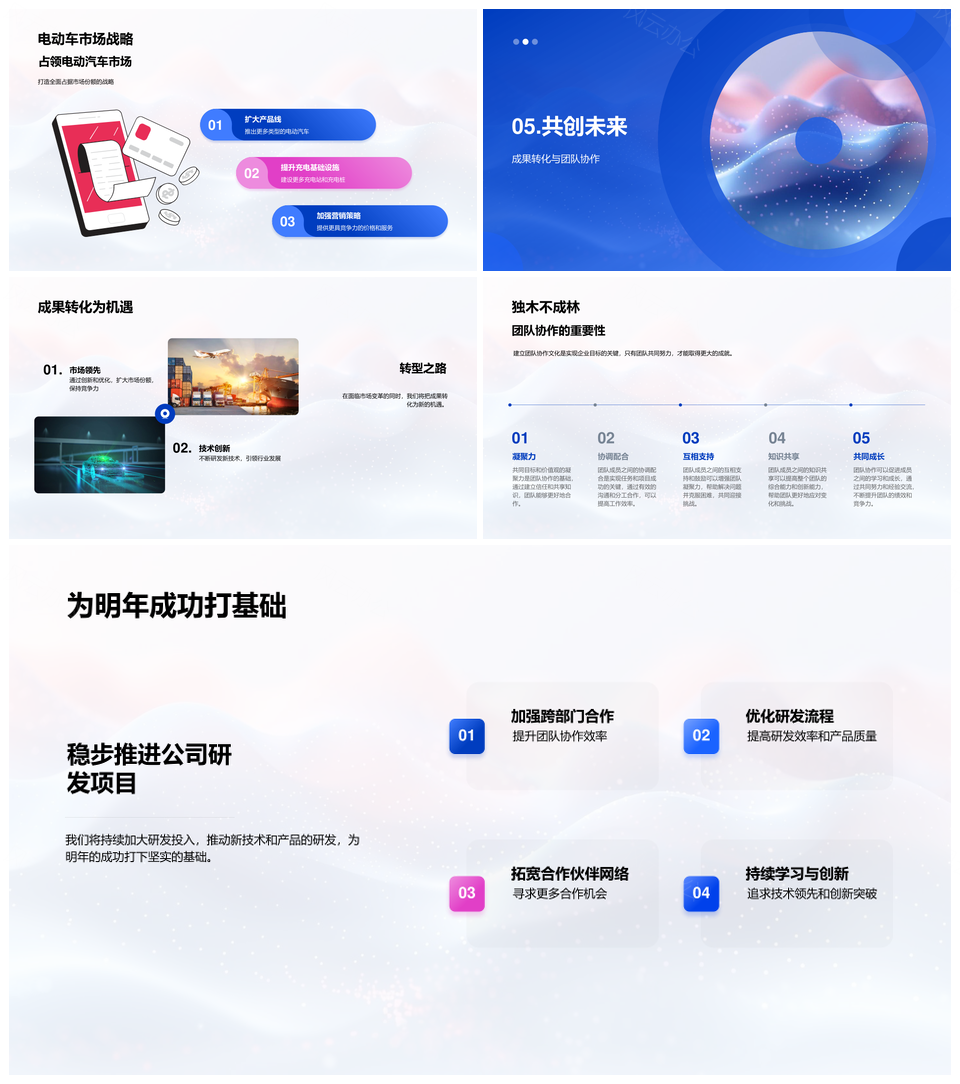 这是一张汽车业年终总结创新突破未来展望电动自动驾驶趋势PPT模板,包含汽车业、年终总结、创新、突破、未来展望、电动、自动驾驶、趋势等主题内容,也可用作汽车业年终总结创新突破、年终总结创新突破未来展望、创新突破未来展望电动自动驾驶、未来展望电动自动驾驶趋势、汽车业创新突破未来展望、年终总结电动自动驾驶趋势、电动自动驾驶趋势总结、汽车业未来展望自动驾驶、创新突破年终总结趋势、突破未来展望电动趋势、汽车业自动驾驶趋势总结、年终未来展望电动趋势、创新突破自动驾驶趋势、年终电动趋势展望、汽车业趋势总结创新等PPT场景使用。 风云办公提供的汽车业年终总结创新突破未来展望电动自动驾驶趋势PPT模板,下载格式为pptx,一共23页,作品中文字及图均可以修改和编辑,图片更改请在作品中右键图片并更换,文字修改请直接点击文字进行修改。