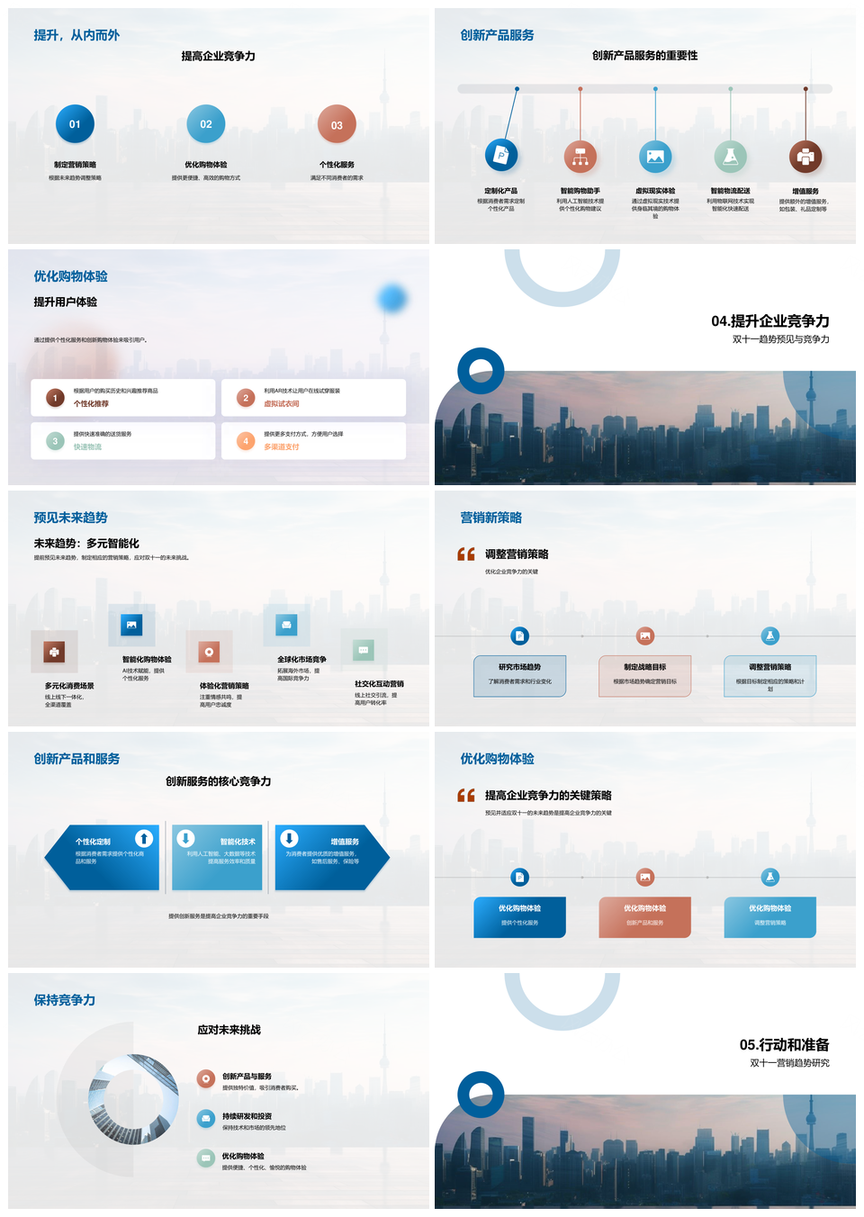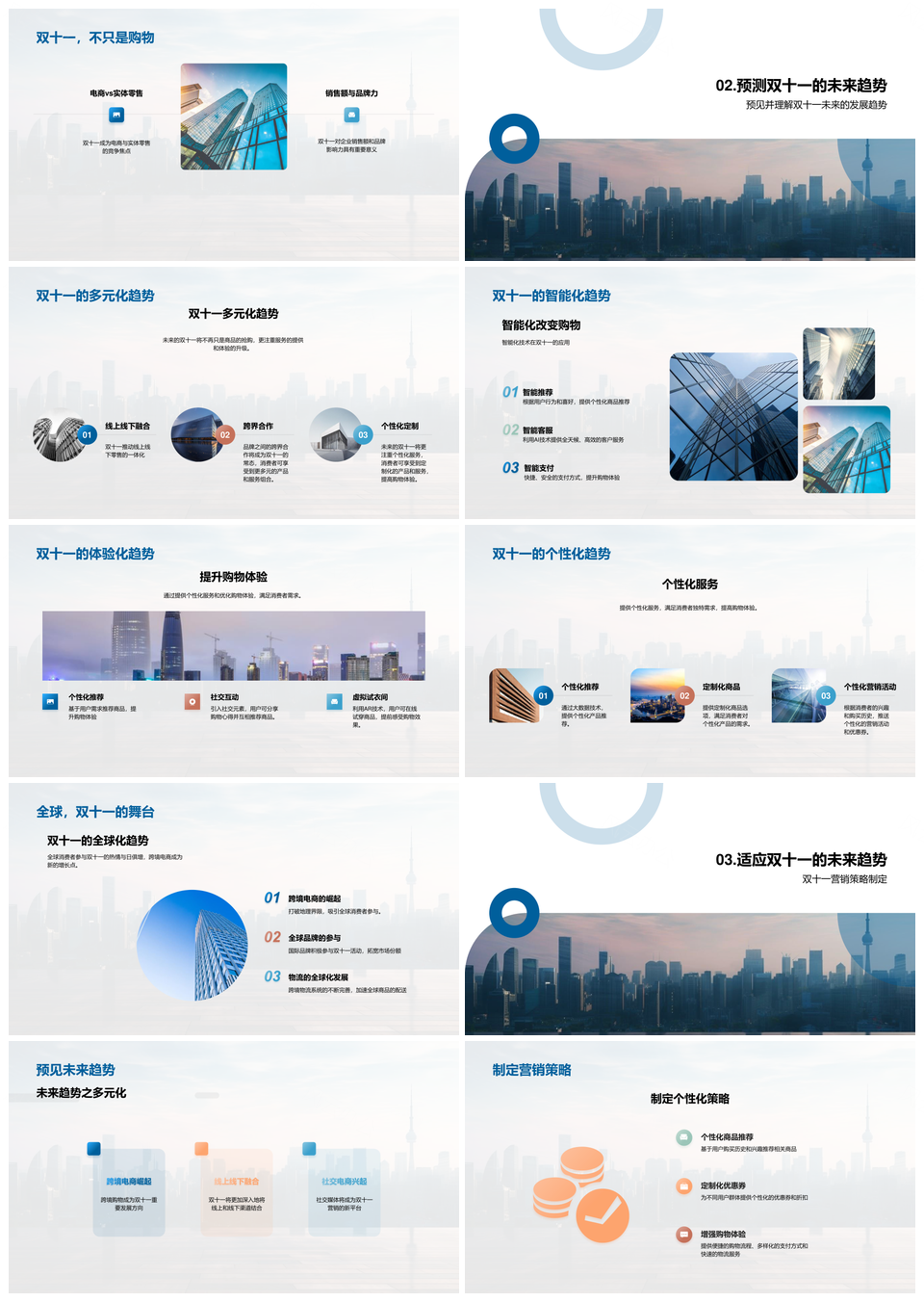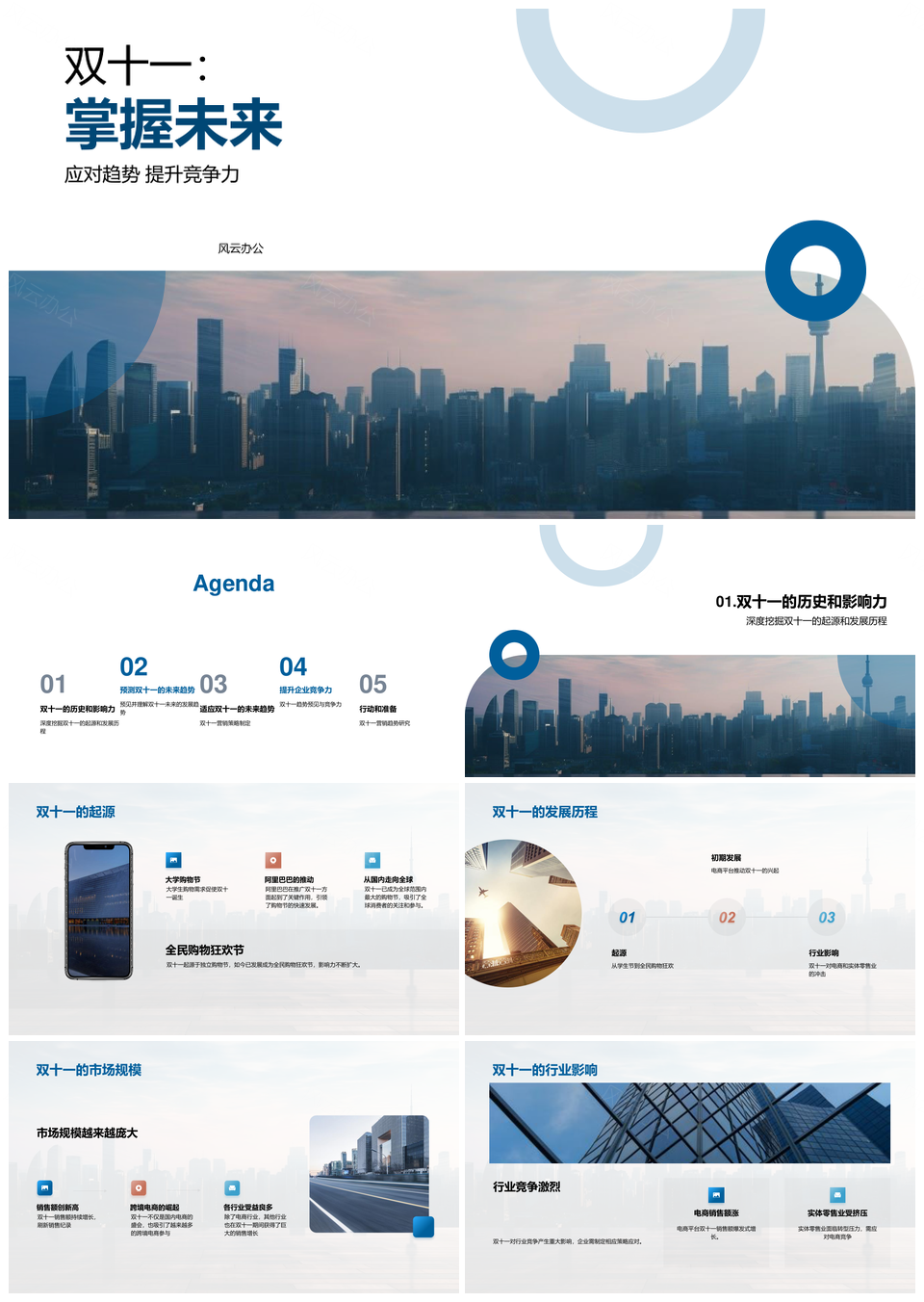 这是一张双十一营销策略未来趋势竞争力市场规模影响PPT模板,包含双十一、营销策略、未来趋势、竞争力、市场规模、影响等主题内容,也可用作营销策略未来趋势、竞争力市场规模影响、双十一营销策略、市场规模影响、未来趋势竞争力、竞争力市场规模、营销策略未来、策略未来趋势、趋势竞争力市场、双十一市场规模、双十一营销、营销策略、未来趋势、市场规模、规模影响等PPT场景使用。 风云办公提供的双十一营销策略未来趋势竞争力市场规模影响PPT模板,下载格式为pptx,一共33页,作品中文字及图均可以修改和编辑,图片更改请在作品中右键图片并更换,文字修改请直接点击文字进行修改。