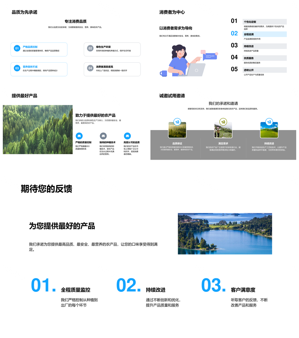 这是一张绿色之路生态品质农产品环保生产ISO管控PPT模板,包含绿色之路、生态、品质、农产品、环保、生产、ISO、管控等主题内容,也可用作绿色之路生态品质农产品环保生产、绿色之路生态品质农产品、生态品质农产品环保生产、品质农产品环保生产ISO管控、绿色之路生态品质、生态农产品环保生产、环保生产ISO管控、生态品质农产品、绿色之路农产品、品质农产品环保、农产品环保生产、环保生产ISO、ISO管控、绿色之路生态、生态品质等PPT场景使用。 风云办公提供的绿色之路生态品质农产品环保生产ISO管控PPT模板,下载格式为pptx,一共33页,作品中文字及图均可以修改和编辑,图片更改请在作品中右键图片并更换,文字修改请直接点击文字进行修改。