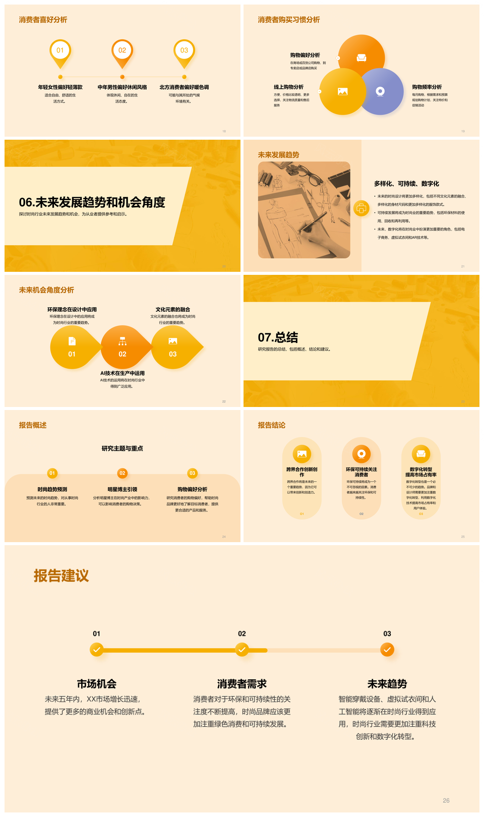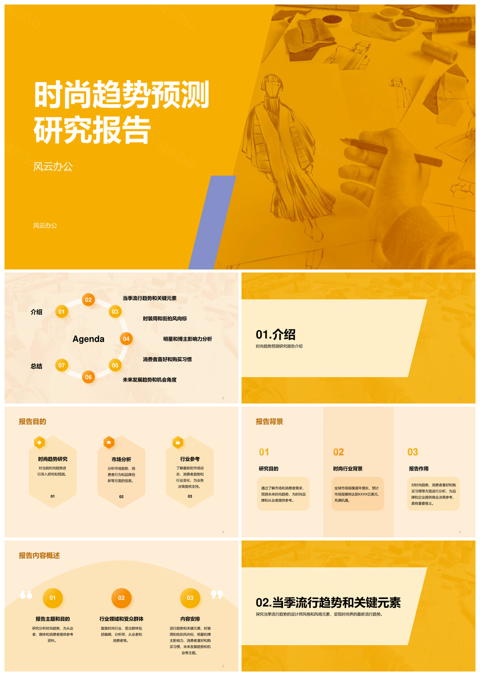 风云办公提供的黄橙服装设计时尚趋势研究报告PPT模板,下载格式为pptx,一共27页,作品中文字及图均可以修改和编辑,图片更改请在作品中右键图片并更换,文字修改请直接点击文字进行修改。