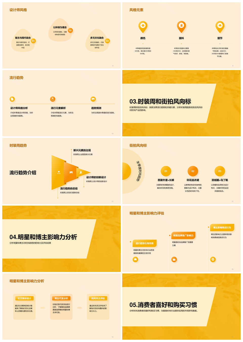 这是一张黄橙服装设计时尚趋势研究报告PPT模板,包含黄橙、服装设计、时尚趋势、研究报告等主题内容,也可用作黄橙服装设计时尚趋势研究报告、黄橙服装设计时尚趋势、黄橙服装设计研究报告、服装设计时尚趋势研究报告、黄橙服装设计时尚、服装设计时尚趋势研究、设计时尚趋势研究报告、黄橙服装设计、服装设计时尚趋势、时尚趋势研究报告、黄橙服装设计时尚、服装设计时尚趋势、设计时尚趋势研究、时尚趋势研究、服装设计研究报告等PPT场景使用。