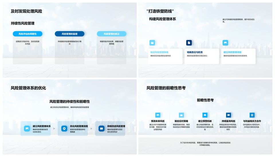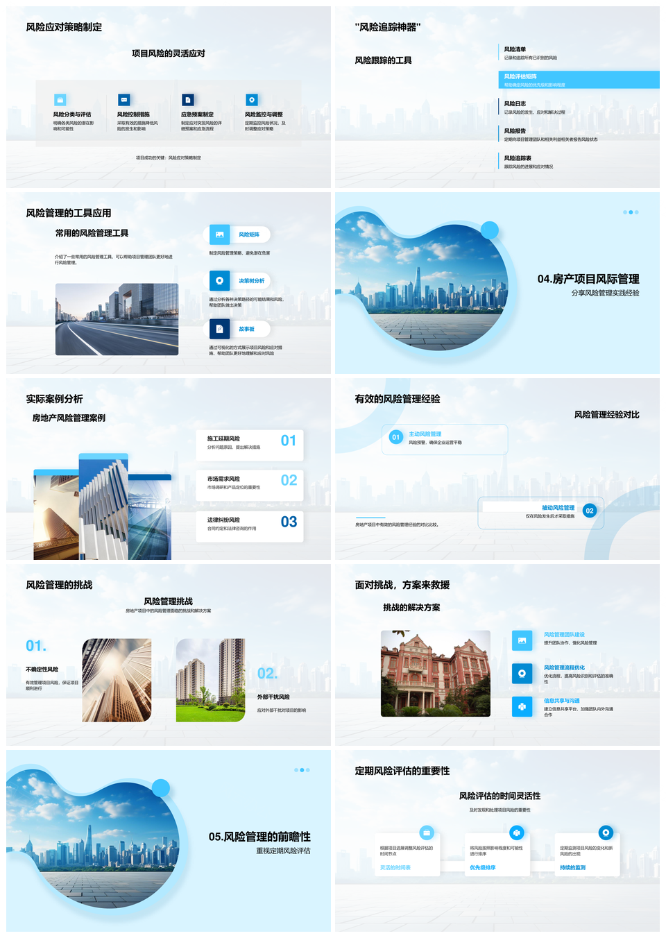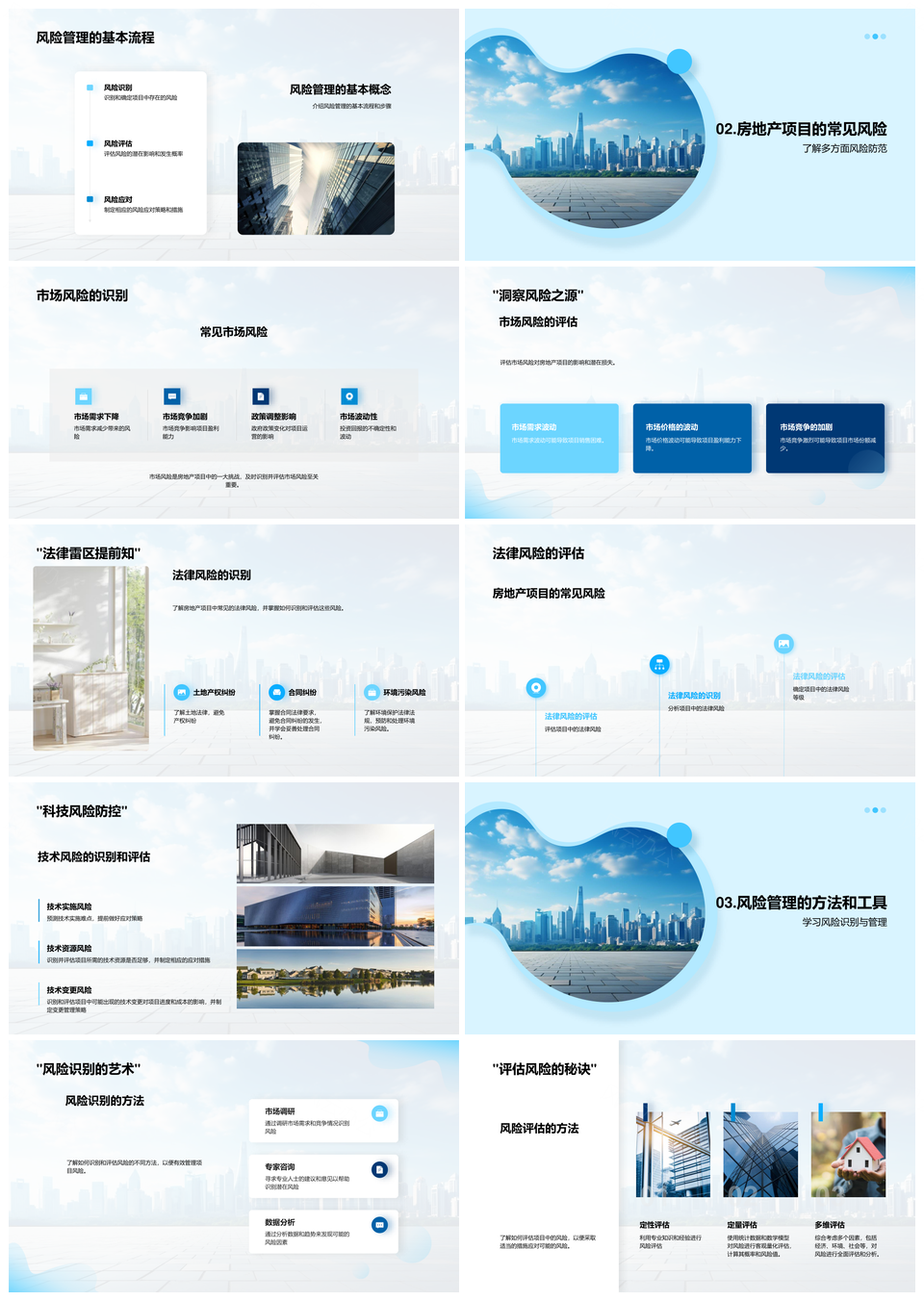这是一张房地产风险管控项目管理风险识别评估市场法律技术摩天大楼PPT模板,包含房地产、风险管控、项目、管理、风险识别、评估、市场、法律、技术、摩天大楼等主题内容,也可用作房地产风险管控项目管理、风险管控项目管理风险识别、项目管理风险识别评估、风险识别评估市场法律、评估市场法律技术、市场法律技术摩天大楼、房地产风险管控、项目管理风险识别、风险评估市场法律、法律技术摩天大楼、房地产项目管理、风险识别法律、市场技术摩天大楼、管控项目评估、管理风险法律等PPT场景使用。 风云办公提供的房地产风险管控项目管理风险识别评估市场法律技术摩天大楼PPT模板,下载格式为pptx,一共32页,作品中文字及图均可以修改和编辑,图片更改请在作品中右键图片并更换,文字修改请直接点击文字进行修改。