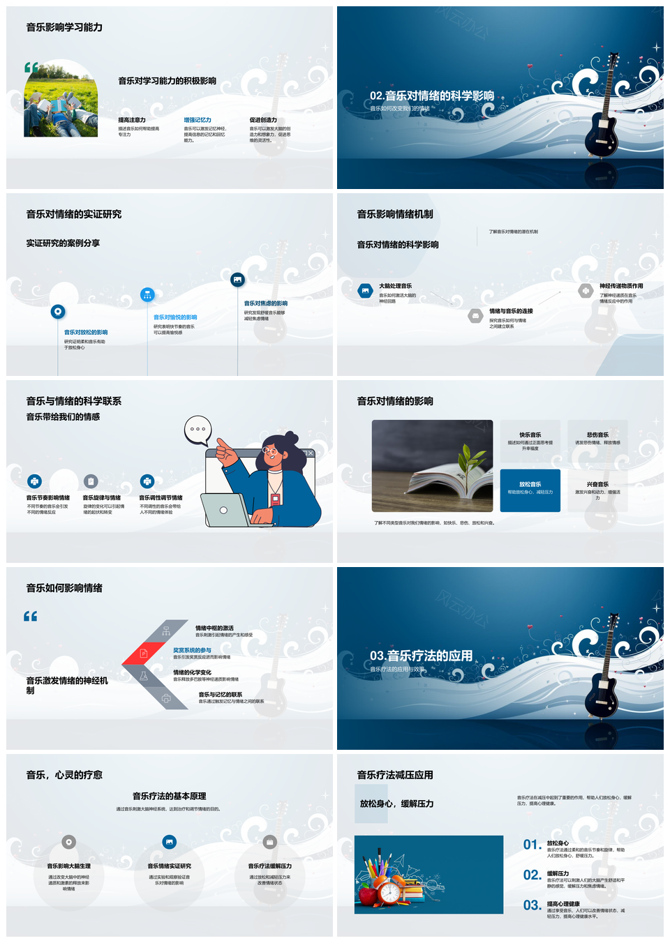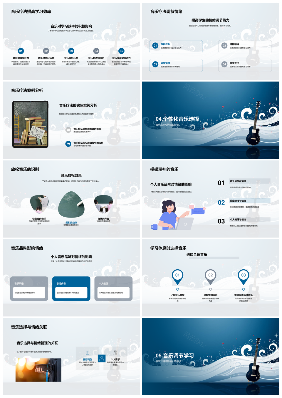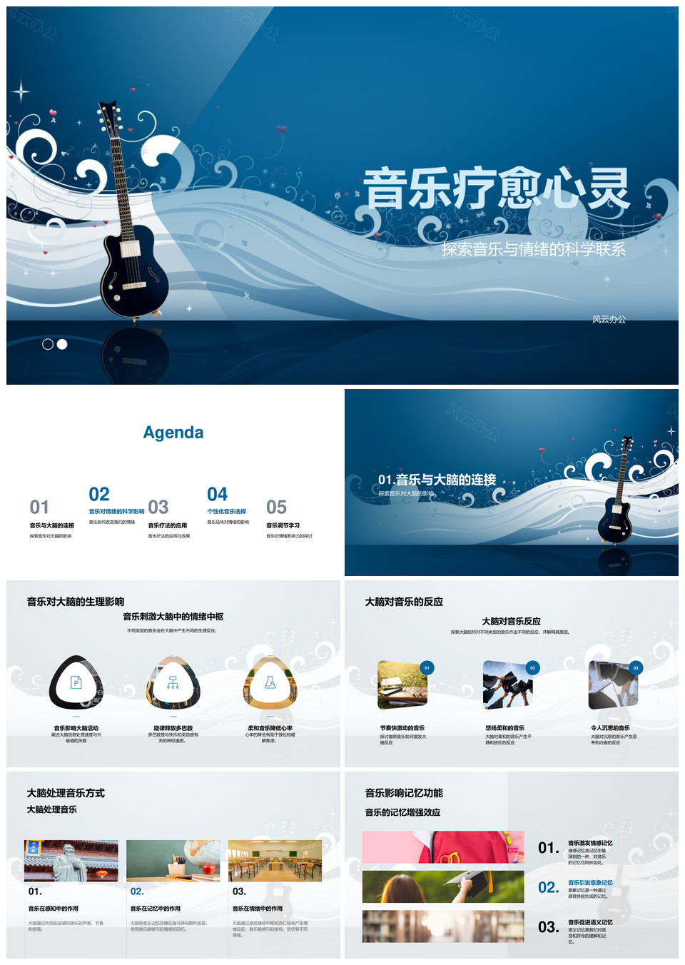风云办公提供的音乐符号疗愈心灵乐章PPT模板,下载格式为pptx,一共33页,作品中文字及图均可以修改和编辑,图片更改请在作品中右键图片并更换,文字修改请直接点击文字进行修改。