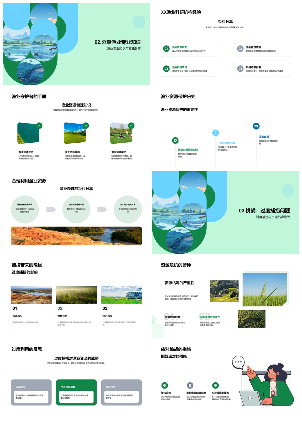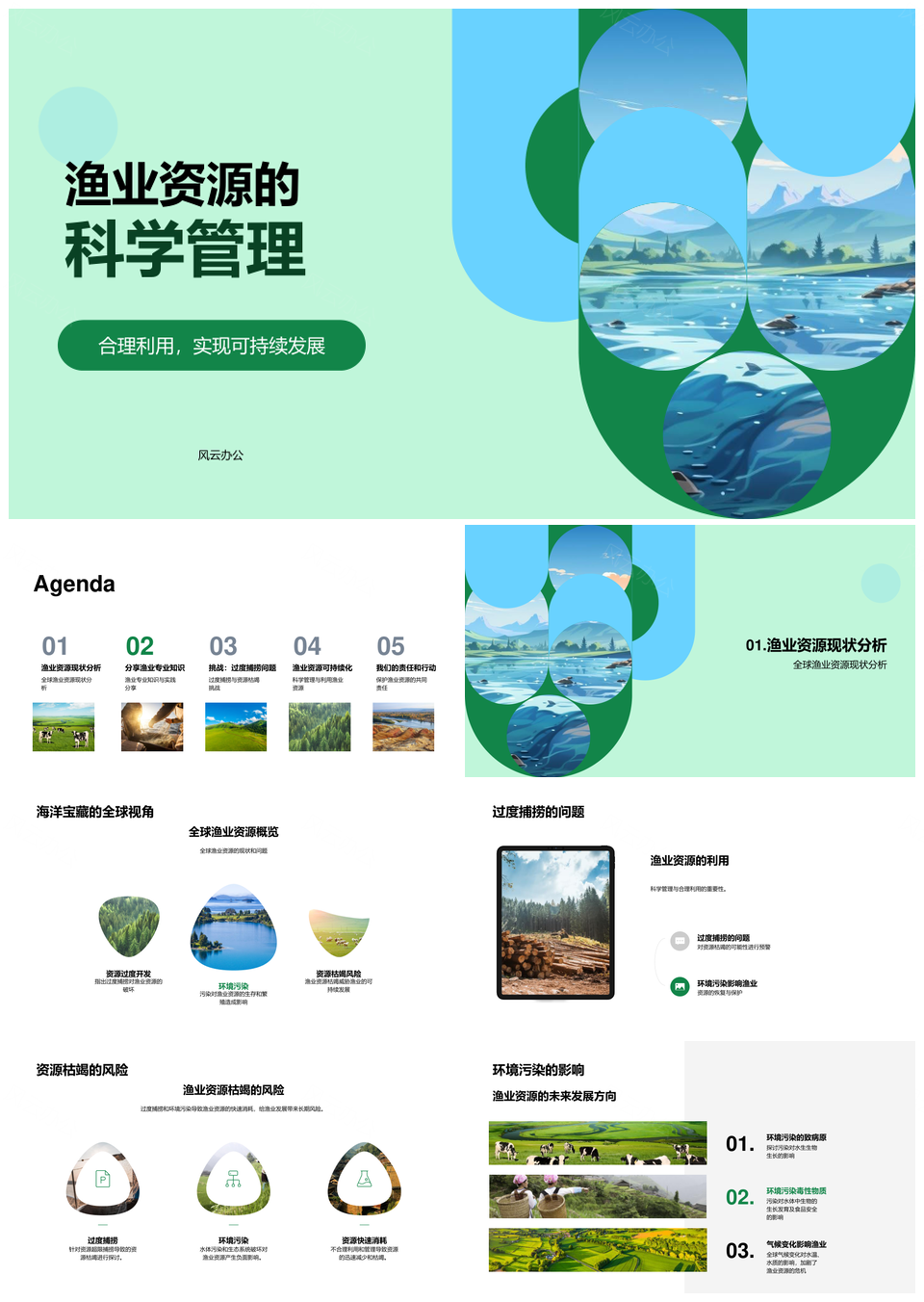 风云办公提供的渔业资源科学管理促可持续发展保护PPT模板,下载格式为pptx,一共28页,作品中文字及图均可以修改和编辑,图片更改请在作品中右键图片并更换,文字修改请直接点击文字进行修改。