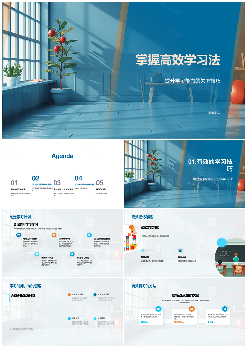 风云办公提供的高效学习法学习能力提升计划时间管理PPT模板,下载格式为pptx,一共28页,作品中文字及图均可以修改和编辑,图片更改请在作品中右键图片并更换,文字修改请直接点击文字进行修改。