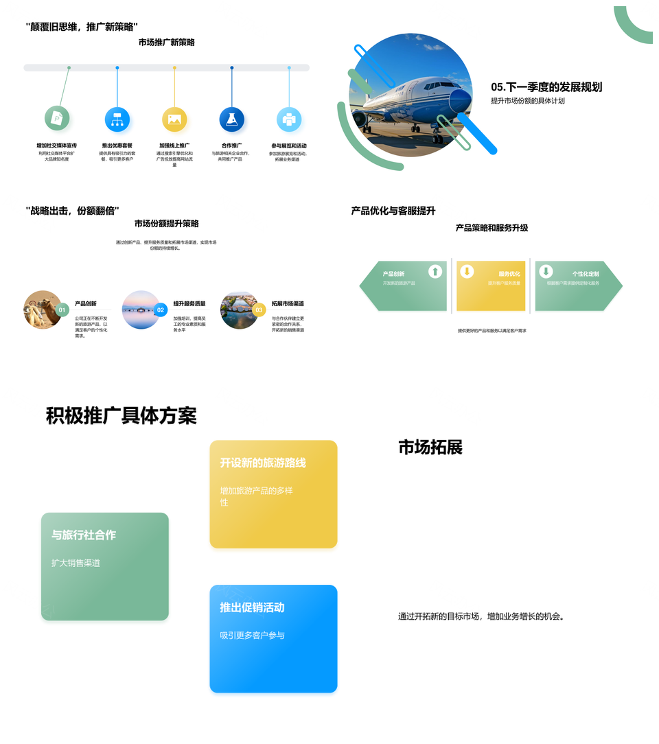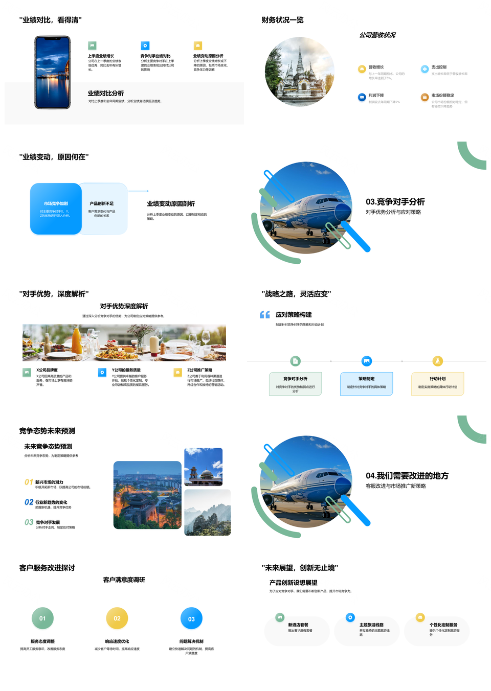 风云办公提供的旅游业绩竞争态势对比与未来策略PPT模板,下载格式为pptx,一共23页,作品中文字及图均可以修改和编辑,图片更改请在作品中右键图片并更换,文字修改请直接点击文字进行修改。