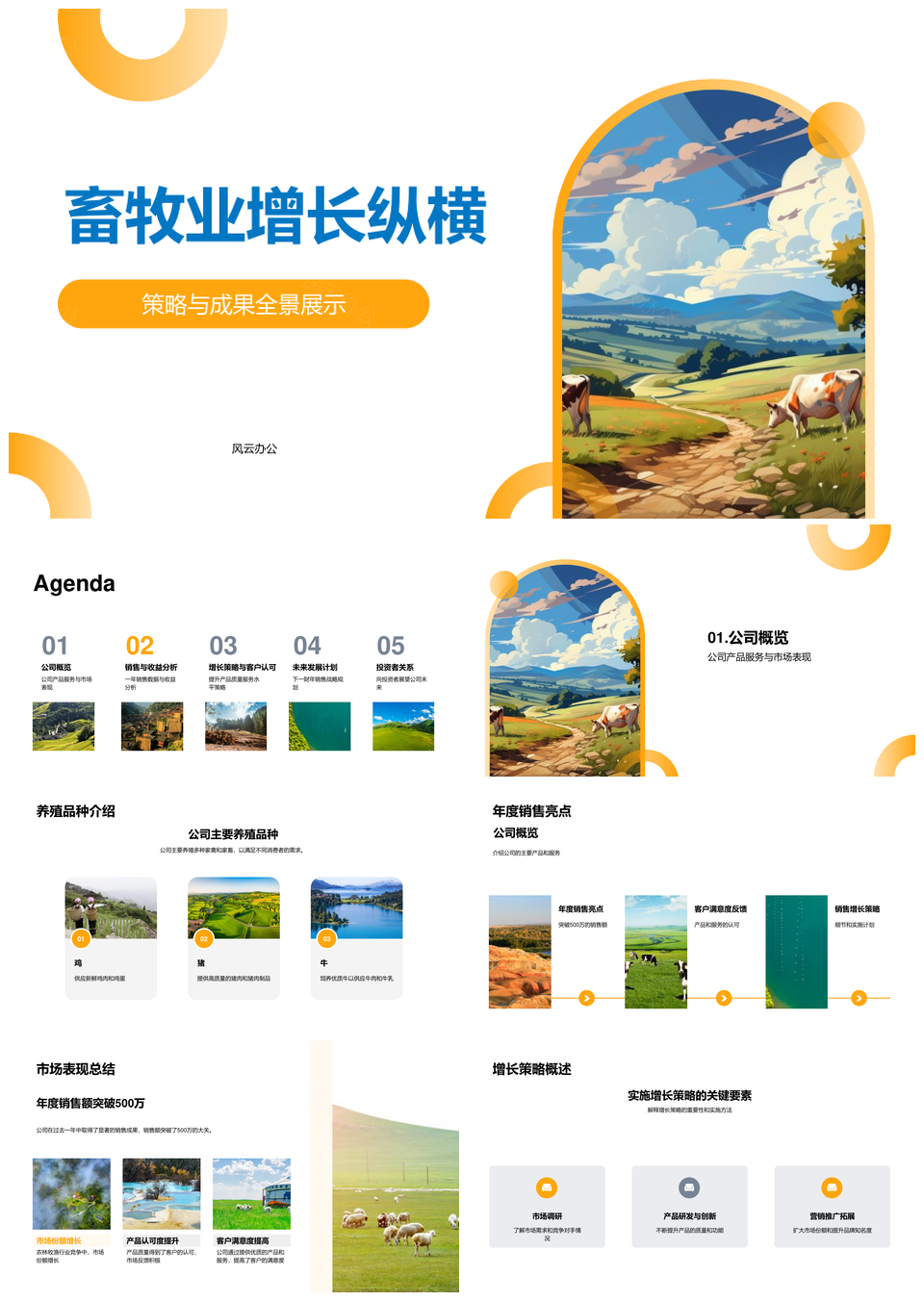 2025畜牧业战略产品服务全球趋势增收挑战年度业绩晴空牧场PPT模板
