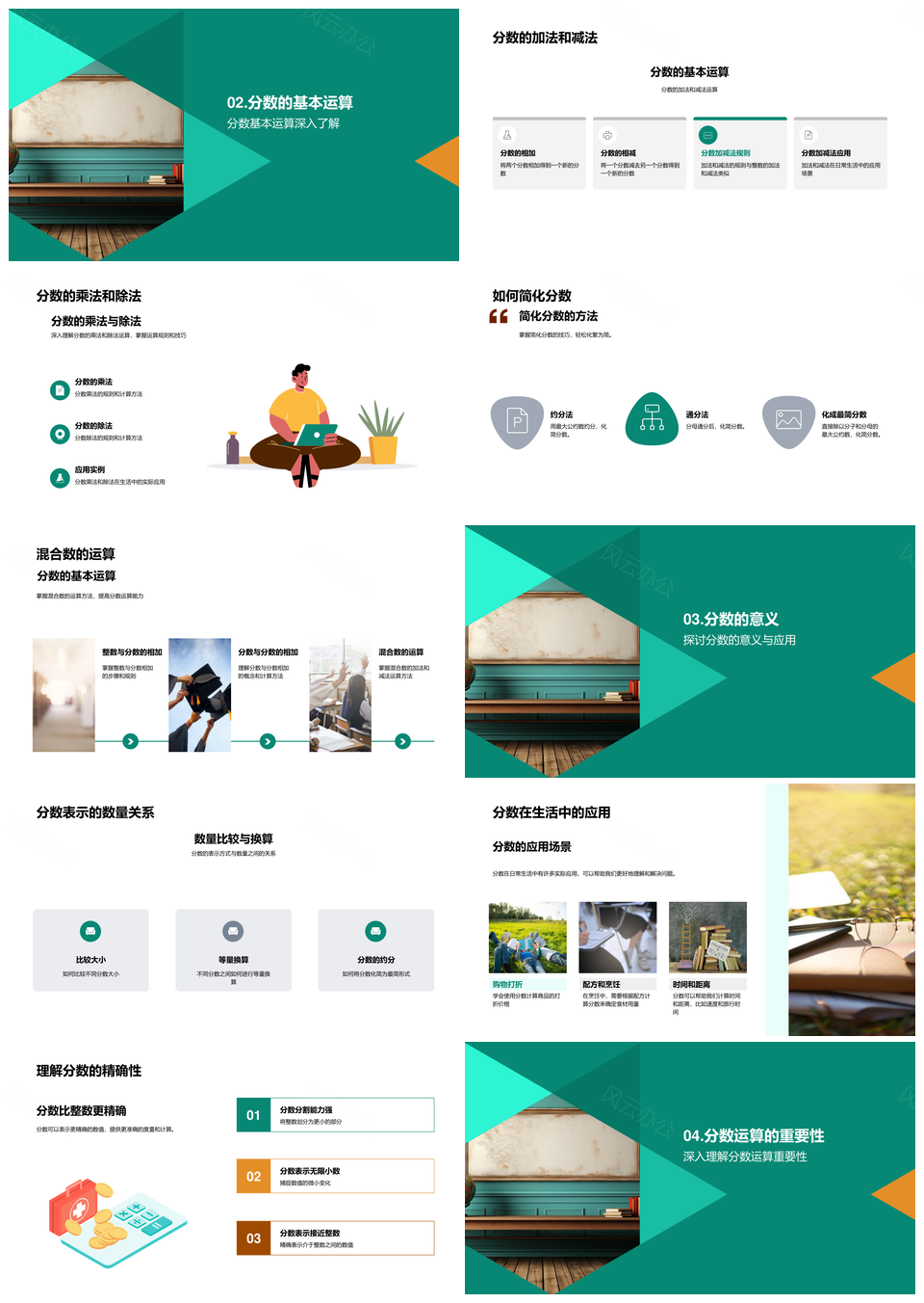 风云办公提供的分数运算四则简混数关应用解析PPT模板,下载格式为pptx,一共25页,作品中文字及图均可以修改和编辑,图片更改请在作品中右键图片并更换,文字修改请直接点击文字进行修改。