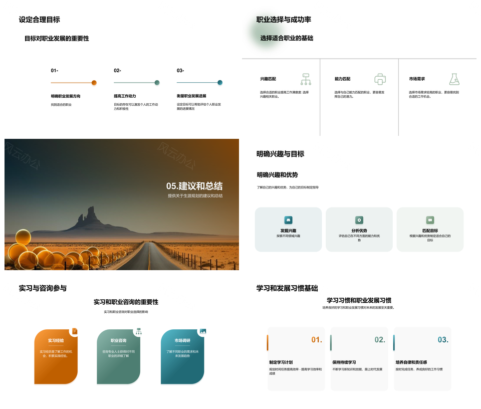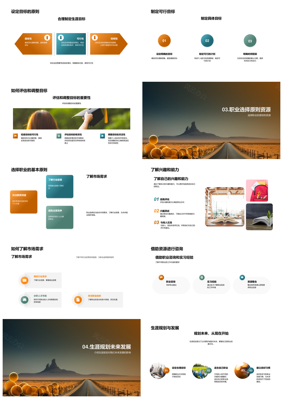 职业规划选择目标路线图市场需求兴趣能力咨询实习成功率PPT模板推荐