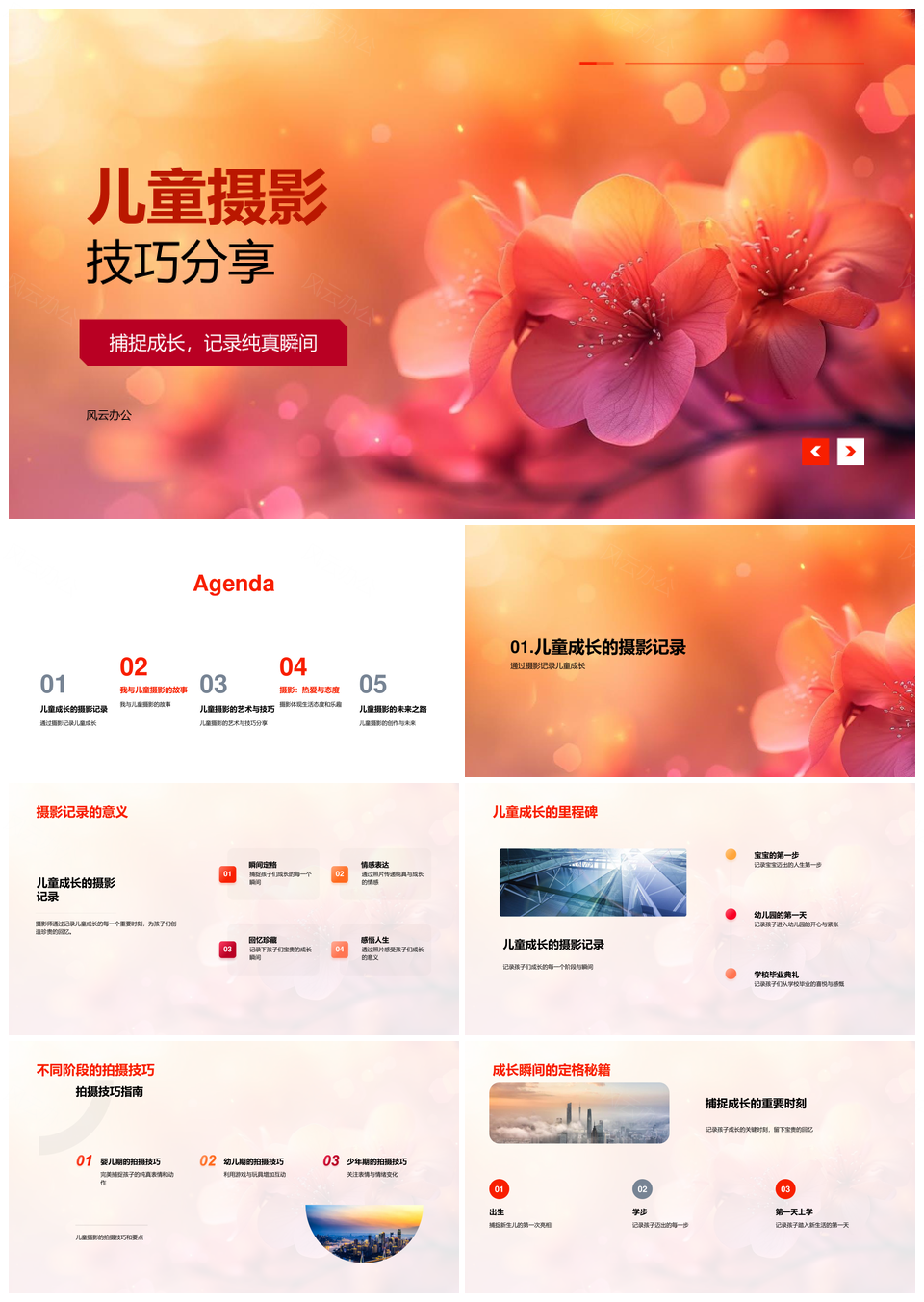 风云办公提供的儿童摄影技巧记录成长纯真互动瞬间PPT模板,下载格式为pptx,一共32页,作品中文字及图均可以修改和编辑,图片更改请在作品中右键图片并更换,文字修改请直接点击文字进行修改。