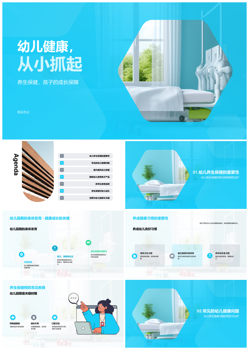 风云办公提供的幼儿健康家长老师共筑养生保健基础PPT模板,下载格式为pptx,一共38页,作品中文字及图均可以修改和编辑,图片更改请在作品中右键图片并更换,文字修改请直接点击文字进行修改。
