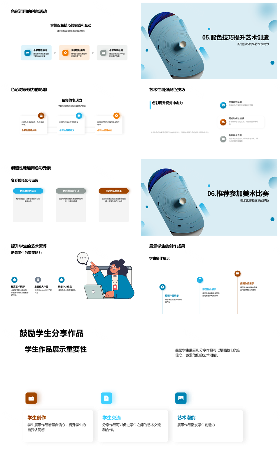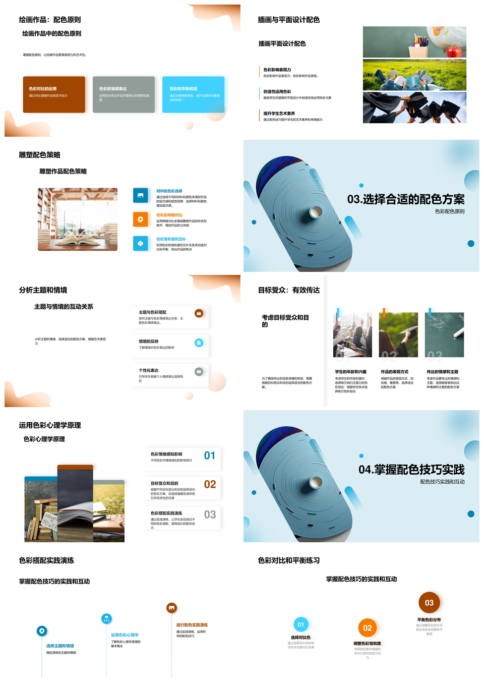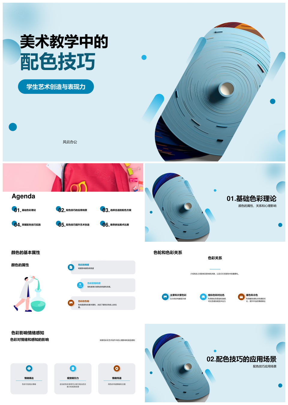 美术教学配色技巧色轮色彩关系艺术创造PPT模板推荐