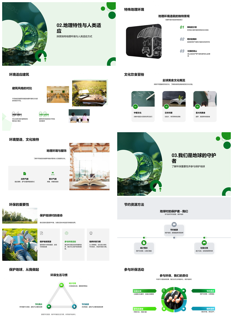 环球地理探秘守护地球多样文明气候环境PPT模板推荐
